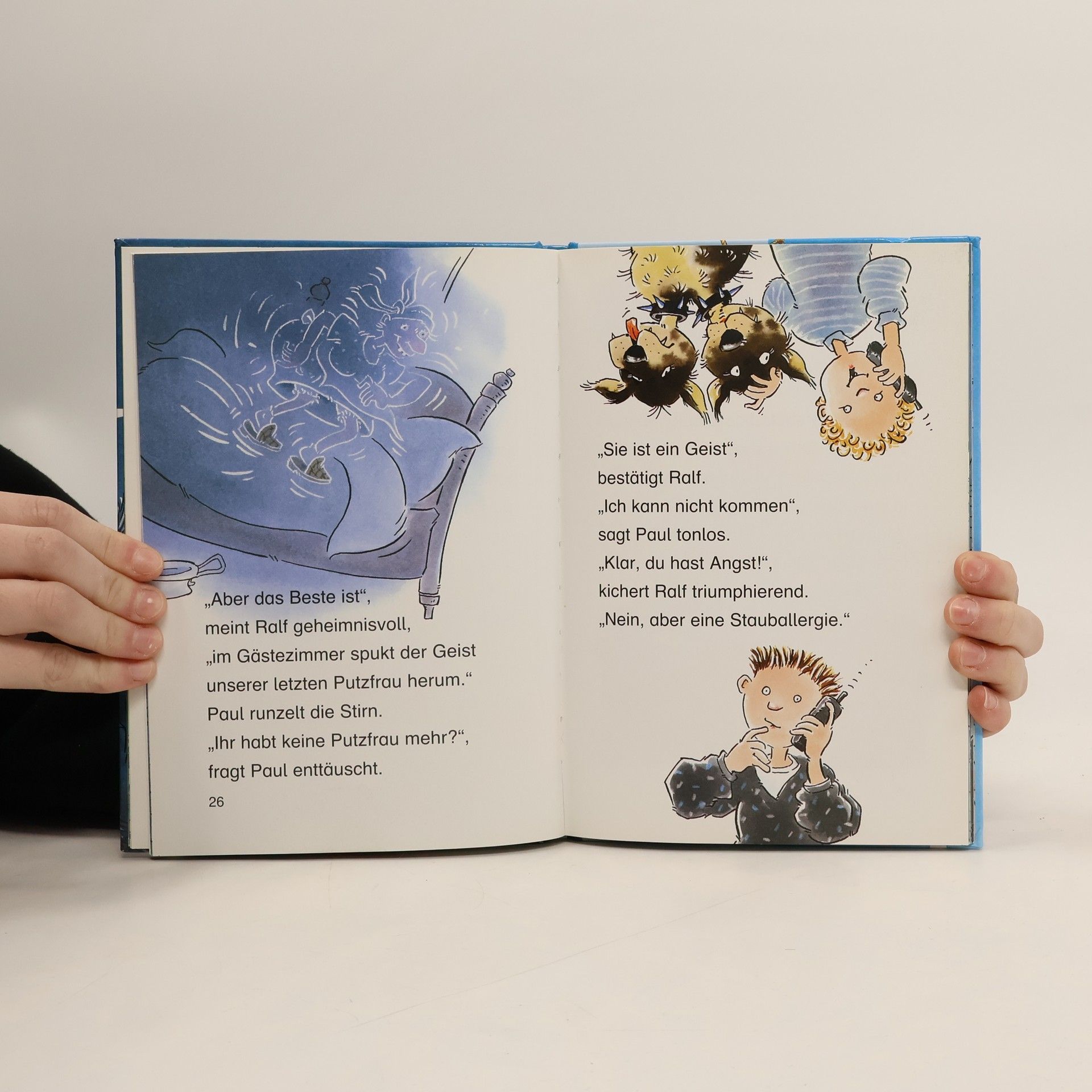 Haie im Burggraben, Fledermäuse unterm Dach und Schlangen im Garten - Paul gruselt sich. Sein Freund Ralf wohnt ja in einem echten Spukhaus. Ob er ihn trotzdem besuchen soll? Auch Mark läuft ein eiskalter Schauer über den Rücken, als er mit seinem Freund Luka nachts allein im Garten zeltet. Lisa und Britta aber sind ganz scharf auf eine richtige Gänsehaut. Deshalb gehen sie auf Geisterjagd.