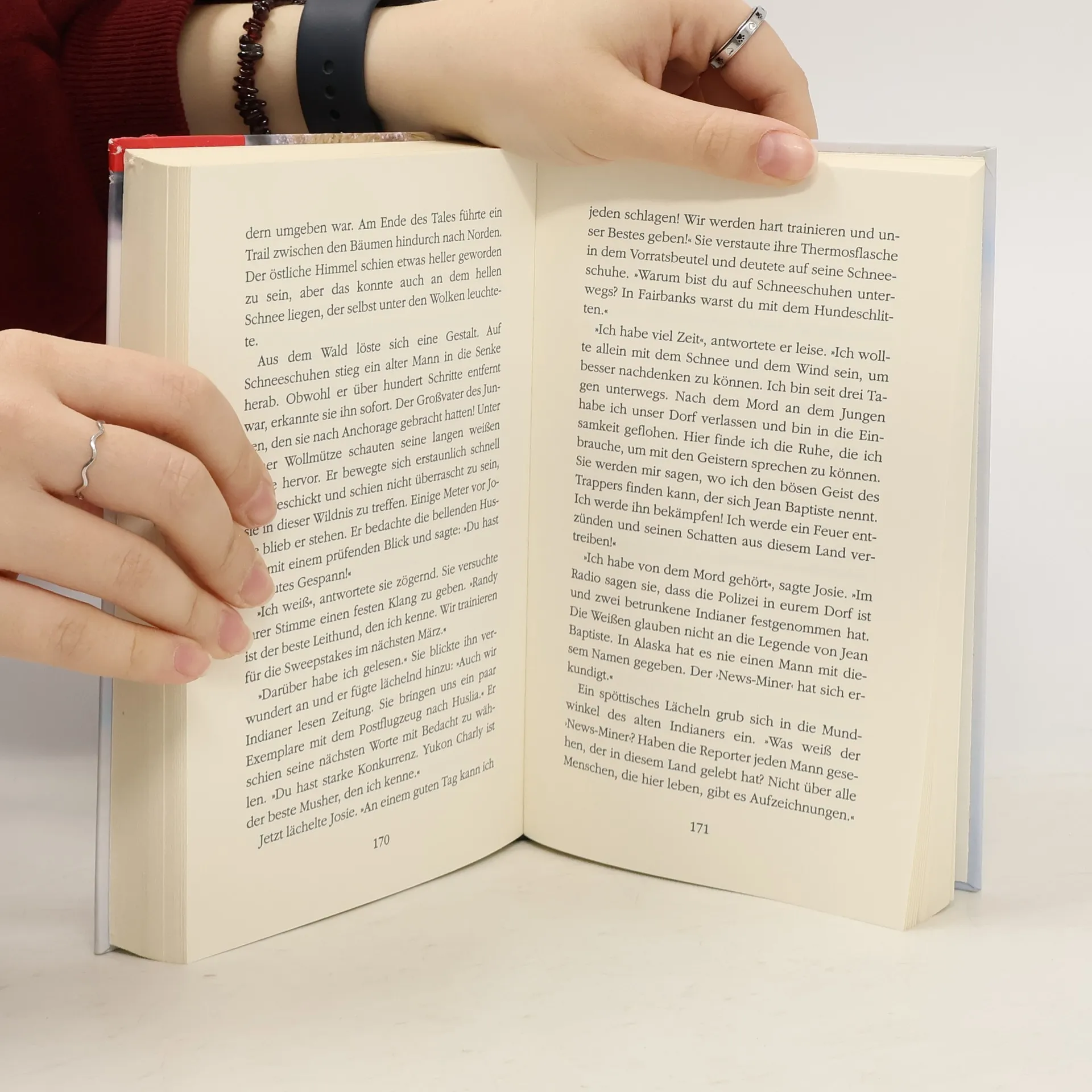 Abenteuer im ewigen Eis Alaskas: Alsaska 1939. Josie arbeitet als Krankenschwester im Spital von Fairbanks. Ihr Vater lebt allein draussen in der Wildnis. Josies Leben spielt sich zwischen diesen Orten ab. Das "Dazwischen" nimmt sie jeweils als Trainingsstrecke für ihre Hunde, denn 1940 will sie unbedingt am ersten Langstreckenrennen von Fairbanks nach Livengood teilnehmen. Eines Tages lernt Josie einen Piloten kennen. Johnny Morgan fliegt für die Regierung, dazu gehören auch Patientenflüge. So kommen sich Josie und Johnny näher. Josie kehrt von ihrem Vater zurück nach Fairbanks. Unterwegs erfährt sie, dass Johnny mit seinem Flugzeug als vermisst gilt. Sie ist nun nicht mehr zu halten. Mit ihrem Gespann macht sie sich auf die Suche nach ihrem Freund. Die ersten 200 Seiten waren schon voll Abenteuer und Spannung, aber die letzten 50 Seiten sind "s Tüpfli uff em i". Dazwischen eingestreut hat es ganz kurze Naturbeschreibungen, die uns Lesenden immer wieder bewusst machen in welch unwirtlicher und doch so faszinierenden Welt der Roman spielt. Ab 11 Jahren, gut, Ursula Ankli.