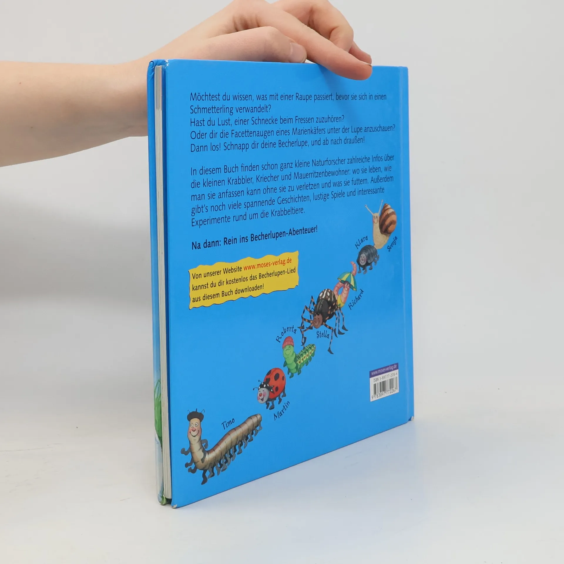 Spielerisch können hier die kleinen Naturentdecker Tiere wie Regenwürmer, Schnecken, Raupen und Spinnen kennen lernen. Liebevoll illustrierte Geschichten und Informationen, spannende Spiele und Experimente mit der Becherlupe bringen das Leben der kleinen Tiere näher.