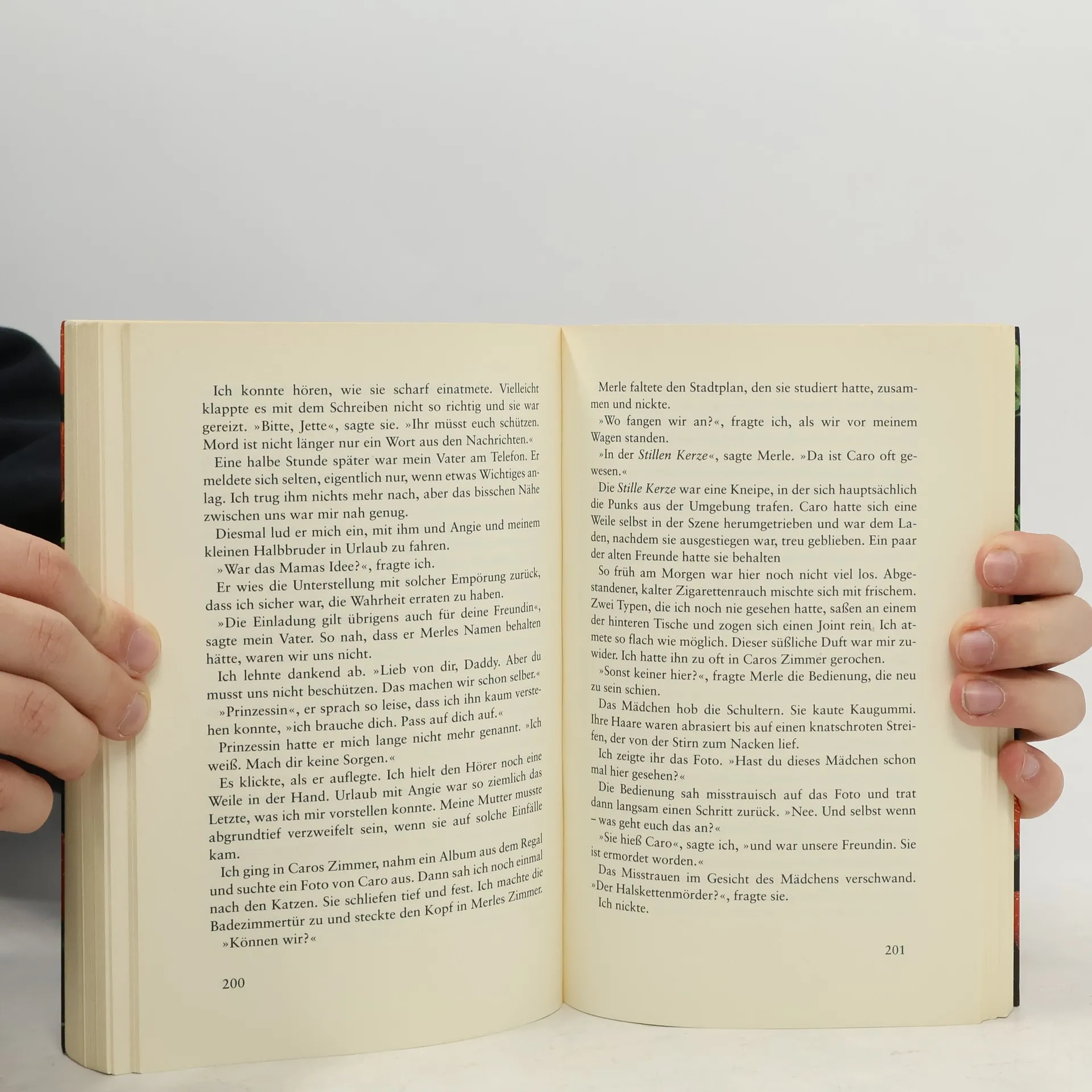 Ein Psychokrimi der Extraklasse, atemberaubend und brillant erzählt. Nach dem Mord an ihrer Freundin Caro schwört Jette Rache und zieht damit die Aufmerksamkeit des Täters auf sich. Unerkannt nähert sich der Mörder, Georg, Jette, die sich hoffnungslos in ihn verliebt und bald in Lebensgefahr schwebt. Zusammen mit Merle lebt Jette in einer WG, während die Bevölkerung ihrer Kleinstadt durch einen Sexualverbrecher beunruhigt ist, der ein Mädchen getötet hat. Die Morde weisen Parallelen zu Verbrechen in Norddeutschland auf: den Opfern wurden die Haare abgeschnitten, und ihre Halsketten fehlen. Jette und Merle sorgen sich um Caro, die einen neuen Freund hat, den sie nicht vorstellen will. In einem vertraulichen Gespräch erfährt Jette, dass Caro den Namen des Mannes nicht nennt und dass er sie nicht angefasst hat. Um ihn zu verführen, macht sich Caro besonders schön. Kurz darauf wird sie ermordet, ihre Halskette ist verschwunden. Jette beschließt, den Mörder zu finden und schwört bei der Beerdigung Rache. Georg, der sich inkognito Jette nähert, weckt ihre Liebe. Blind vor Verliebtheit ignoriert sie die alarmierenden Parallelen zwischen Georg und Caros geheimnisvollem Freund. Während die Polizei Georg immer näher kommt, bringt Caros Tagebuch den Kommissar auf seine Spur. Georg bleibt nur die Flucht, doch was wird aus Jette, die seine Identität kennt? Ein spannender und temporeicher Krimi, der nicht nur den Täter, sondern auch die zwi