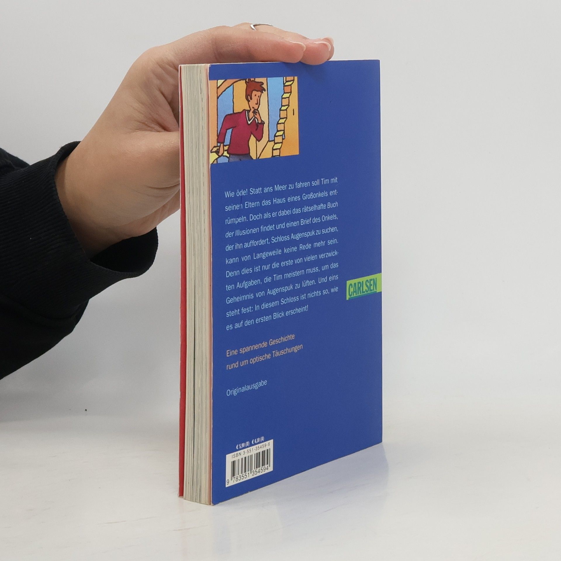 Alles beginnt mit einem geheimnisvollen Brief, den Tim von seinem verschollenen Großonkel erhält. Die verschlüsselte Nachricht darin führt ihn auf Schloss Augenspuk und kaum hat er das alte Gemäuer betreten, erlebt er ein seltsames Abenteuer nach dem anderen: Durch immer neue versteckte Botschaften wird er durch die Zimmer gelockt, landet auf Treppen, die nirgendwo hinführen, stößt auf Bilder, die ihre Farben verändern, begegnet düsteren Gestalten, die größer und kleiner werden, sieht Zeichen, die im Dunkeln zu leuchten beginnen ...
