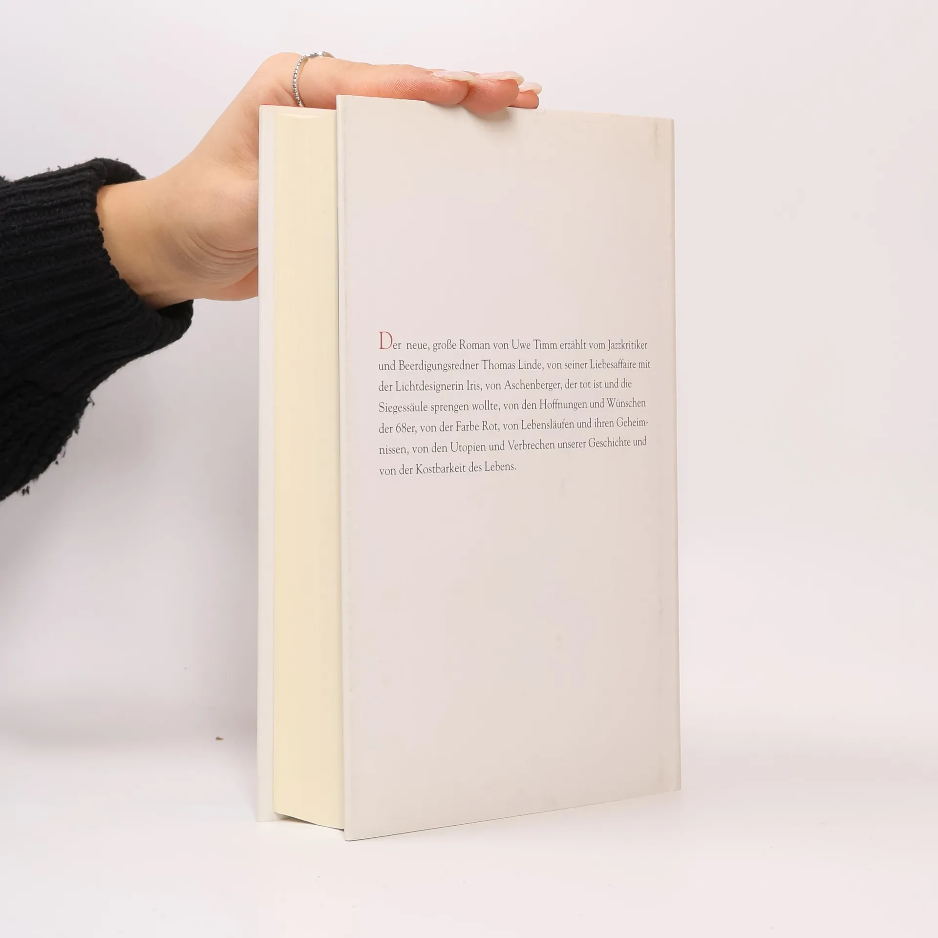 Licht! Kein Sprengstoff! Der neue Roman von Uwe Timm erzählt von Thomas Linde, einem Jazzkritiker und Beerdigungsredner, der in einer leidenschaftlichen Affäre mit der Lichtdesignerin Iris steckt. Während er sich mit dem Nachlass des verstorbenen Aschenberger beschäftigt, einem ehemaligen Kampfgefährten der 68er, entdeckt er Sprengstoff, der für einen Anschlag auf die Siegessäule gedacht war. Das Buch entfaltet sich in einem kurzen, aber intensiven Zeitrahmen, der mehr als ein halbes Jahrhundert an Geschichten, Erinnerungen und Gedanken umfasst. Linde arbeitet an einer Rede für Aschenberger und reflektiert über die Hoffnungen und Utopien der 68er, die Kämpfe um eine gerechtere Welt und die Geheimnisse der Lebensläufe. Die Farbe Rot spielt eine zentrale Rolle in Lindes Überlegungen und seiner Beziehung zu Iris, die ihm wichtige Einsichten vermittelt. Timm erzählt von einem unvollendeten Leben, das die Wünsche und Träume einer Generation in sich trägt, während das Wort „Hoffnung“ aus dem Wortschatz gestrichen scheint. In mosaikartigen Erzählungen, durchzogen von Rhythmen und Leitmotiven, bleibt der Leser gefesselt von dieser dichten, nachdenklichen und schönen Geschichte.