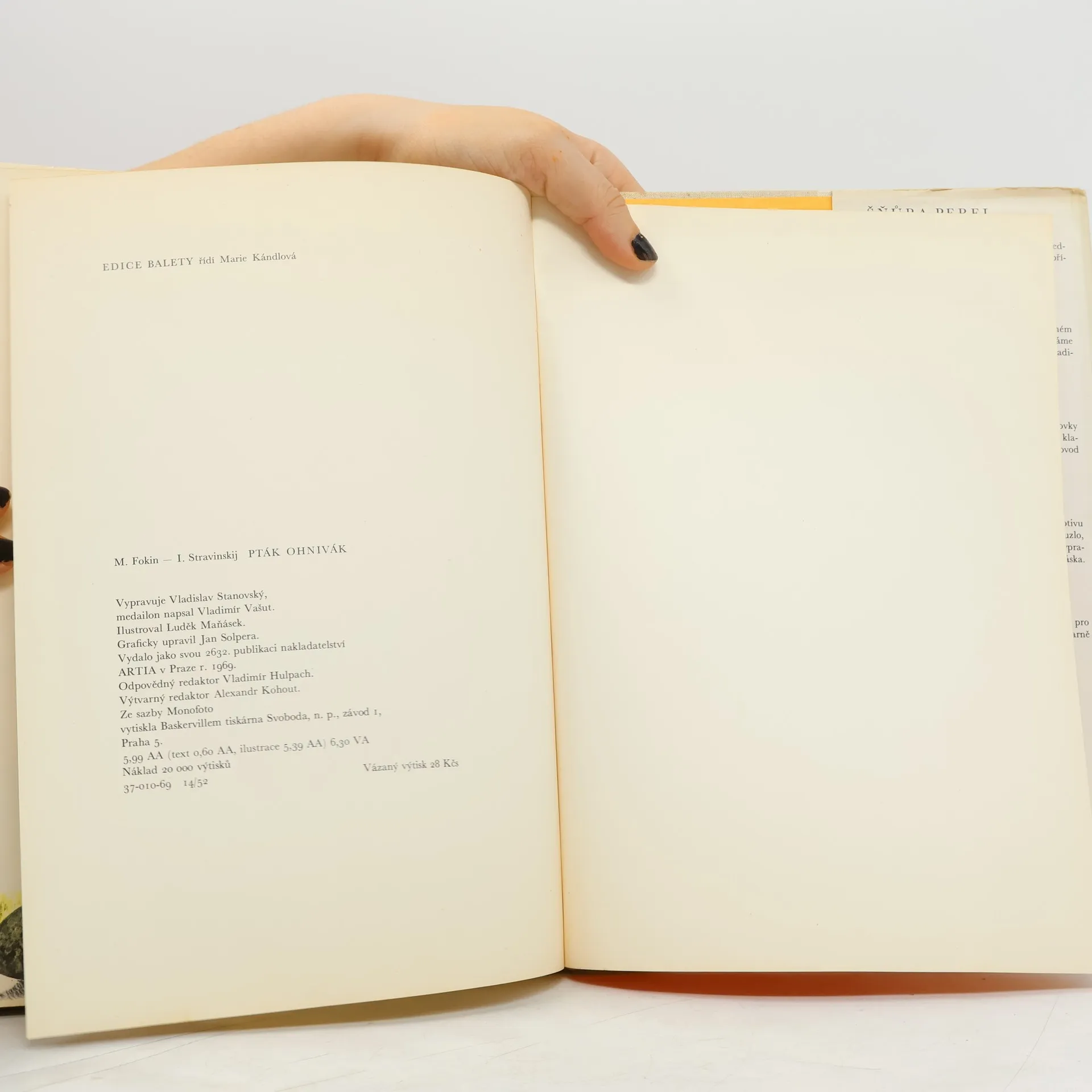 Umělecky převyprávěné libreto Michaila Fokina, znamenitého choreografa Ďagilevova Ruského baletu z počátku tohoto století, vytvořené podle národních ruských pohádek o Ptáku Ohniváku. o Kostěji Nesmrtelném a Ivanu careviči.