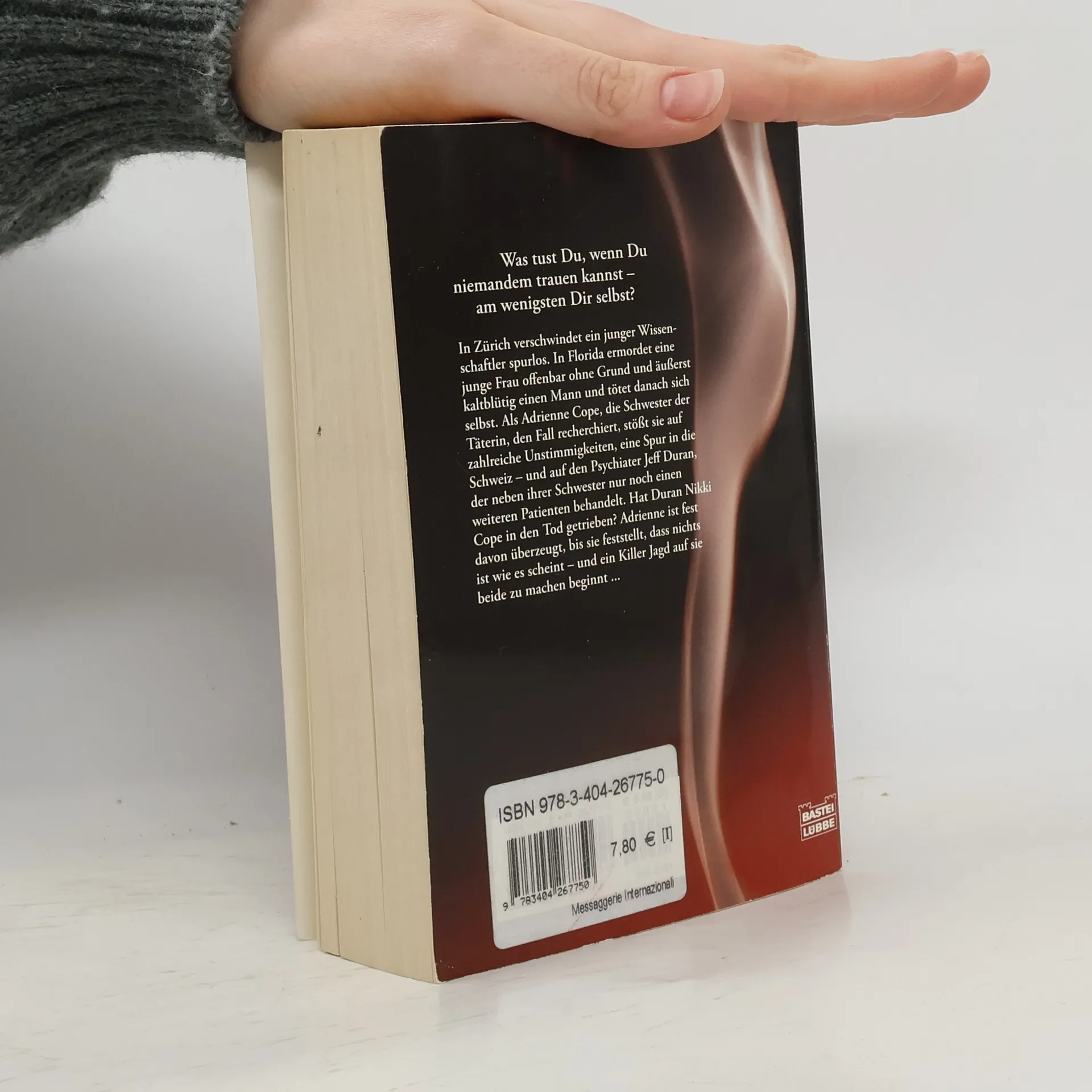 In Zürich verschwindet ein junger Wissenschaftler spurlos. In Florida ermordet eine junge Frau offenbar ohne Grund und äußerst kaltblütig einen Mann und tötet danach sich selbst. Als Adrienne Cope, die Schwester der Täterin, den Fall recherchiert, stößt sie auf zahlreiche Unstimmigkeiten, eine Spur in die Schweiz ═ und auf den Psychiater Jeff Duran, der neben ihrer Schwester nur noch einen weiteren Patienten behandelt. Hat Duran Nikki Cope in den Tod getrieben? Adrienne ist fest davon überzeugt, bis sie feststellt, dass nichts ist wie es scheint ═ und ein Killer Jagd auf sie beide zu machen beginnt.