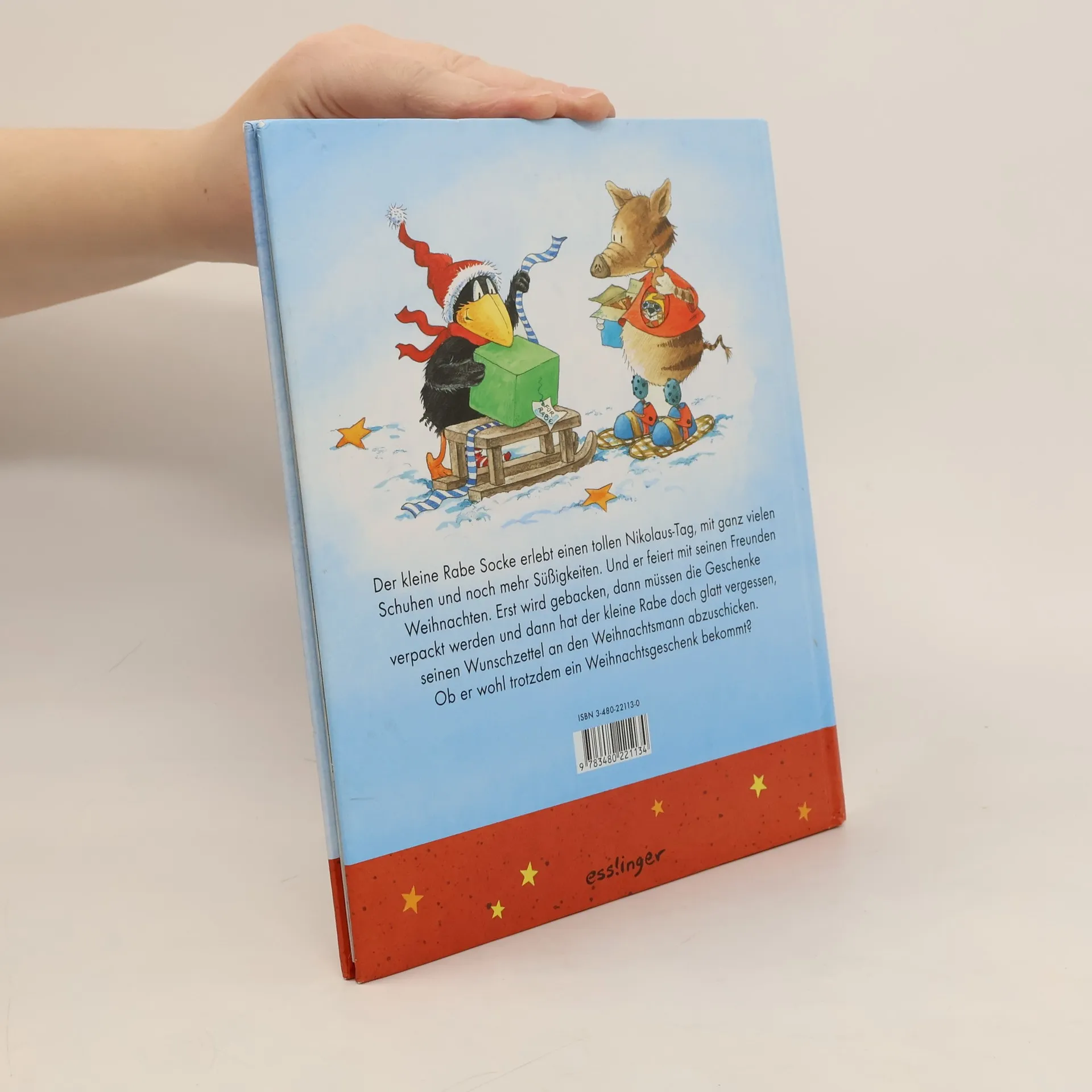 Der kleine Rabe hat nur eine Socke und kann keinen Schuh zu Nikolaus vor die Tür stellen. Doch der Dachs leiht ihm etwas, und am nächsten Morgen hat der Rabe genug Plätzchen, um sie mit seinen Freunden zu teilen. Zwei fröhliche Weihnachtsgeschichten sorgen für Vorlesespaß!