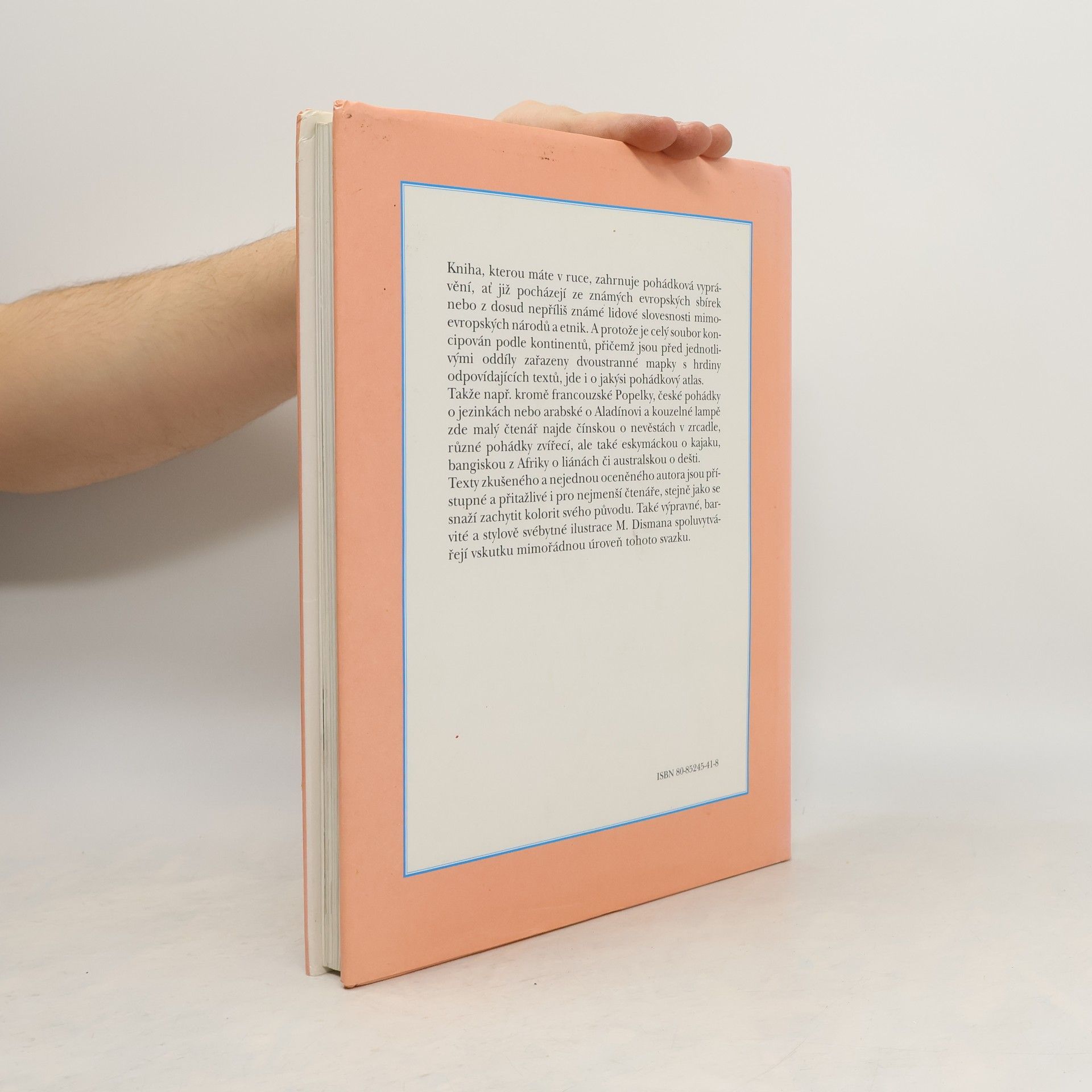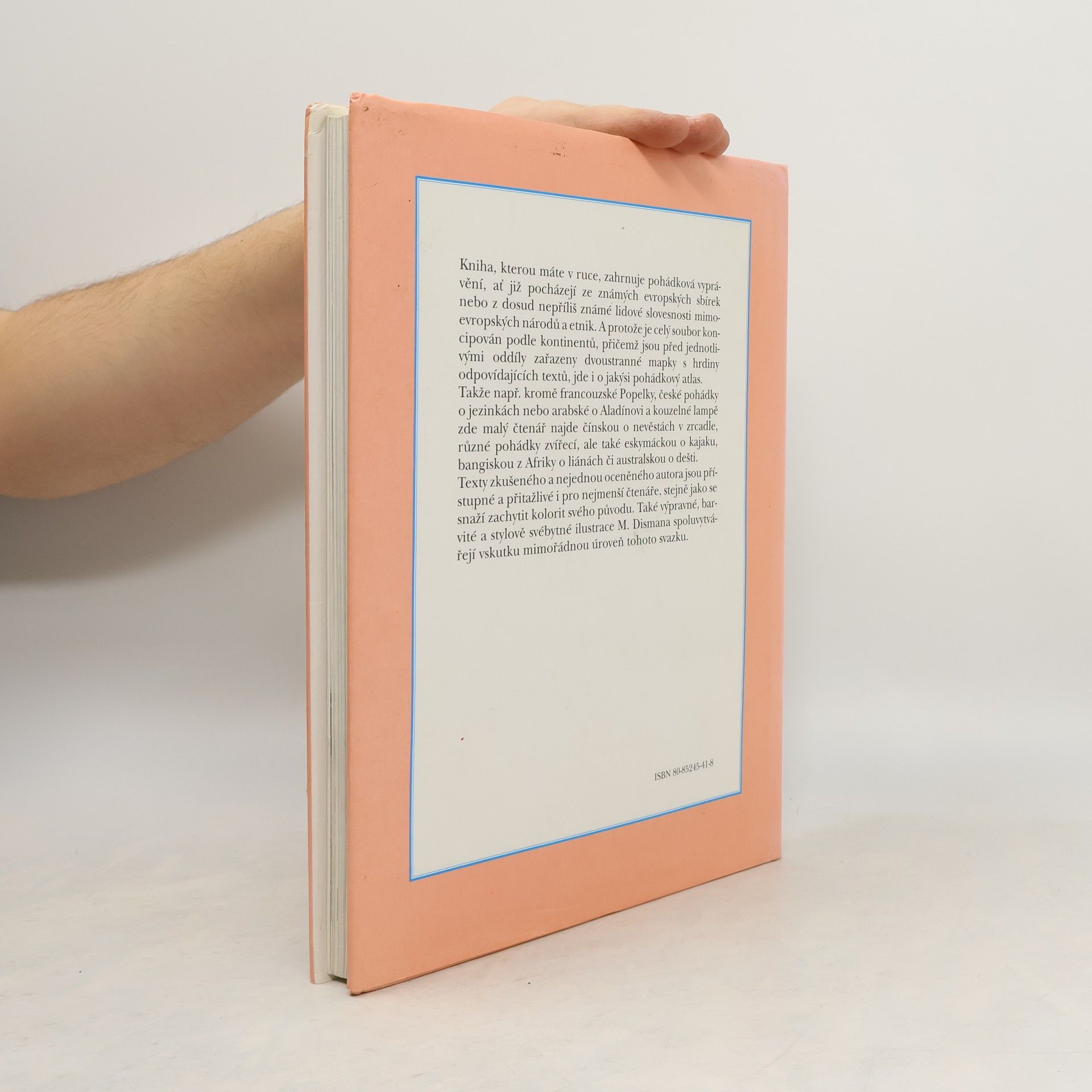 Kniha, kterou máte v ruce, zahrnuje pohádková vyprávění, ať již pocházejí ze známých evropských sbírek nebo z dosud nepříliš známé lidové slovesnosti mimoevropských národů a etnik. A protože je celý soubor koncipován podle kontinentů, přičemž jsou před jednotlivými oddíly zařazenydvoustranné mapky s hrdiny odpovídajících textů, jde i o jakýsi pohádkový atlas. Takže kromě např. francouzské Popelky, české pohádky o jezinkách nebo arabské o Aladínovi a kouzelné lampě zde malý čtenář najde čínskou o nevěstách v zrcadle, různé pohádky zvířecí, ale také eskymáckou o kajaku, bangiskou z Afriky o liánách či australskou o dešti. Texty zkušeného a nejednou oceněného autora jsou přístupné a přitažlivé i pro nejmenší čtenáře, stejně jako se snaží zachytit kolorit svého původu. Také výpravné, barvité a stylově svébytné ilustrace M. Dismana spoluvytvářejí vskutku mimořádnou úroveň tohoto svazku.