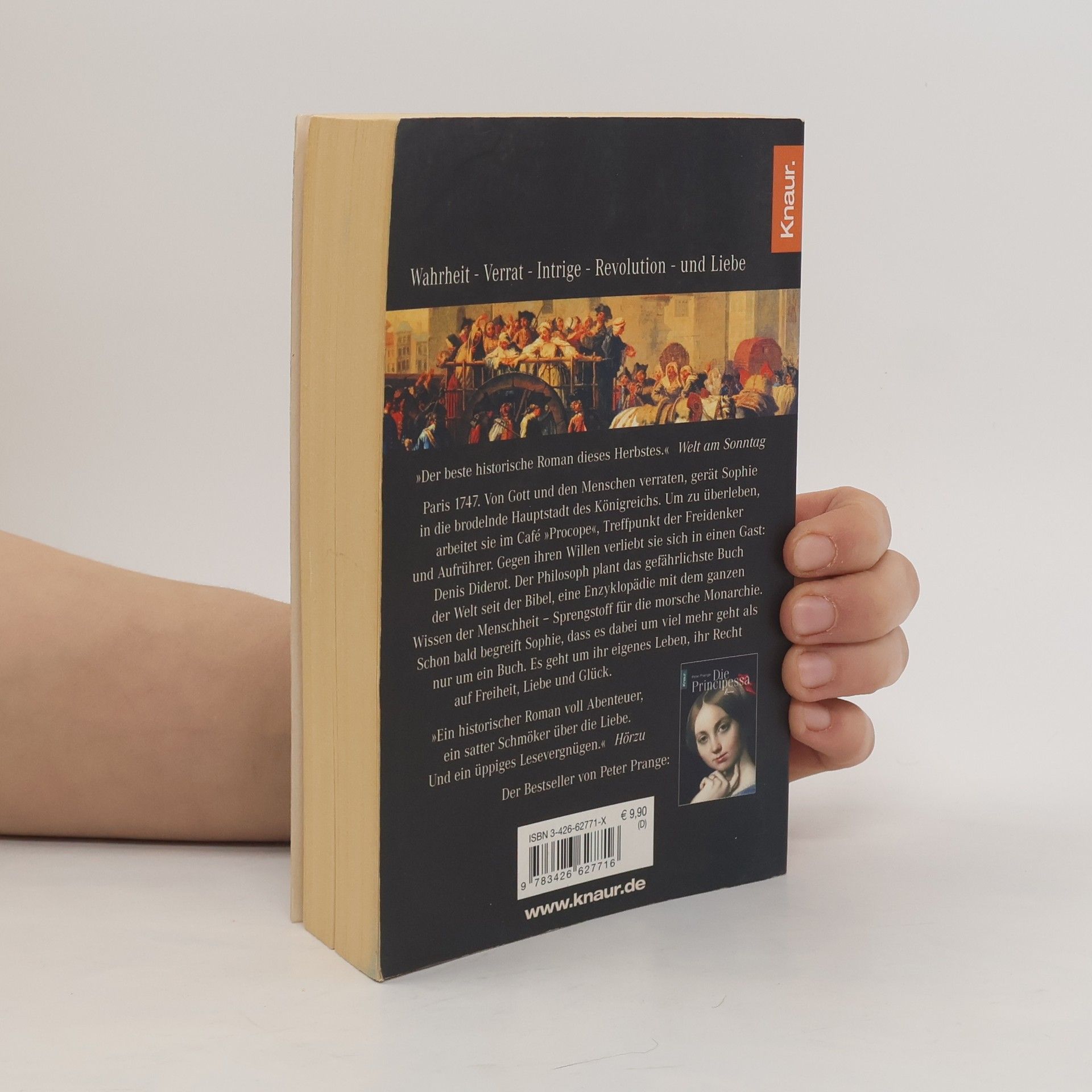 Paris 1747. Von Gott und den Menschen verraten, gerät Sophie in die brodelnde Hauptstadt des Königreichs. Um zu überleben, arbeitet sie im Café „Procope“, Treffpunkt der Freidenker und Aufrührer. Gegen ihren Willen verliebt sie sich in einen Gast: Denis Diderot. Der Philosoph plant das gefährlichste Buch der Welt seit der Bibel, eine Enzyklopädie mit dem ganzen Wissen der Menschheit - Sprengstoff für die morsche Monarchie. Schon bald begreift Sophie, dass es dabei um viel mehr geht als nur um ein Buch. Es geht um ihr eigenes Leben, ihr Recht auf Freiheit, Liebe und Glück.
