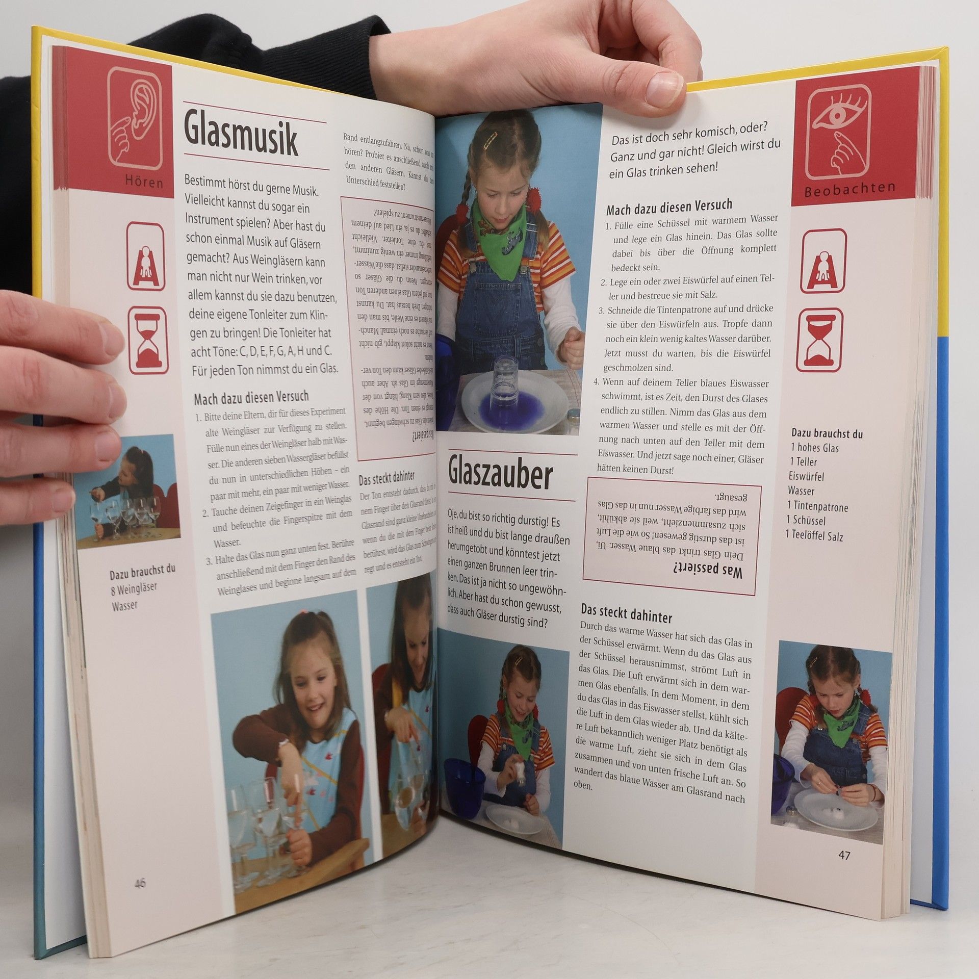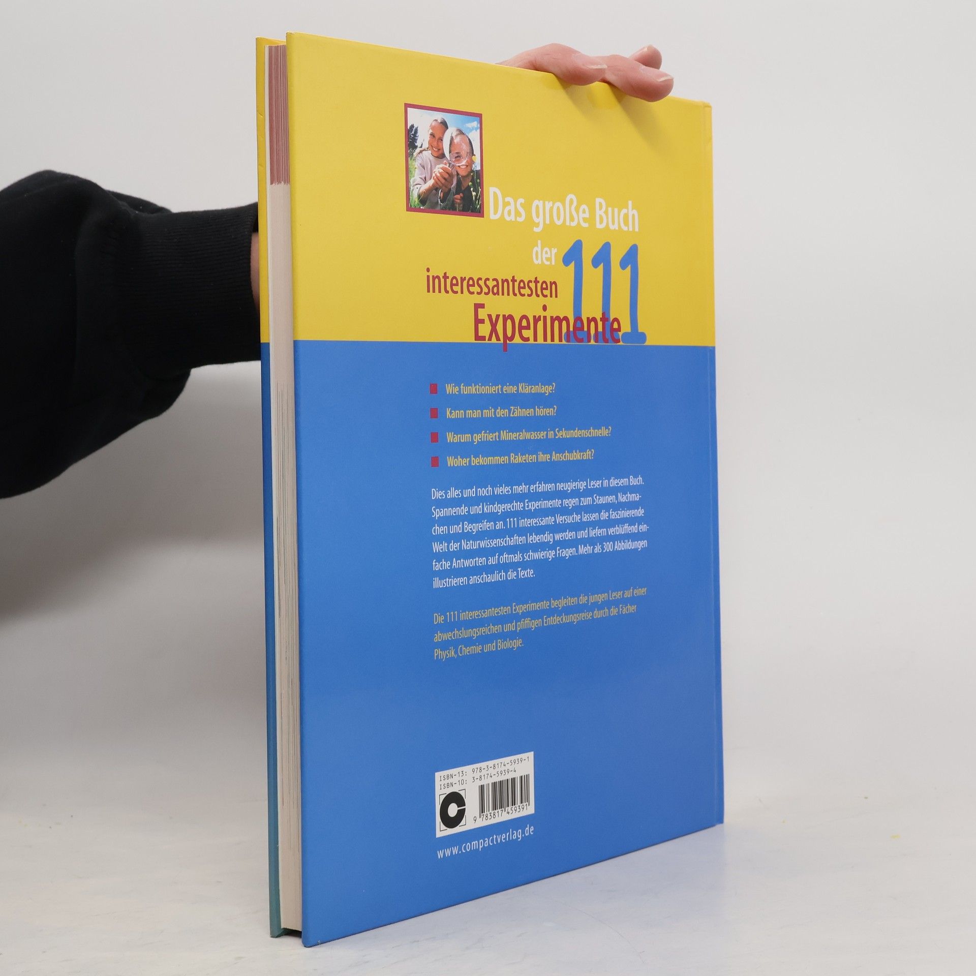 111 spannende und ungefährliche Experimente aus den Bereichen Physik, Chemie und Technik regen zum Staunen und Lernen an. Die Experimente sind dem Alltag entnommen und nach Hören, Riechen, Schmecken, Fühlen, Tasten und Beobachten gegliedert. Symbole zeigen den Schwierigkeitsgrad sowie die benötigte Zeit der Durchführung. Mit wissenschaftlichern Hintergrundinformationen.