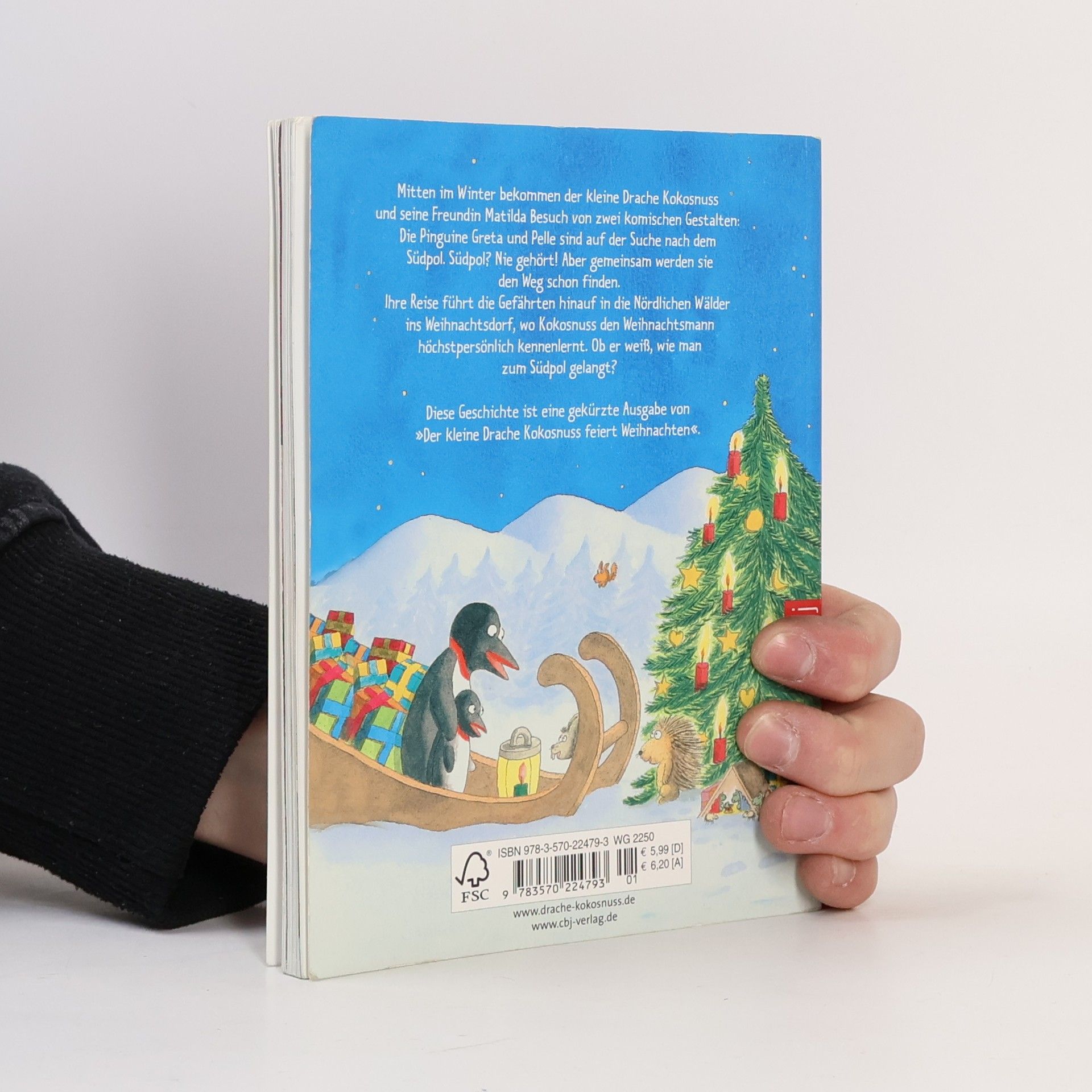 Fröhliche Weihnachten mit dem kleinen Drachen Kokosnuss! Mitten im Winter bekommen der kleine Drache Kokosnuss und seine Freundin Matilda Besuch von zwei komischen Gestalten: Die Pinguine Greta und Pelle sind auf der Suche nach dem Südpol. Südpol? Nie gehört! Aber gemeinsam werden sie den Weg bestimmt finden. Sie kommen in die Nördlichen Wälder zum Weihnachtsdorf. Kokosnuss, der bislang noch nie etwas vom Weihnachtsfest gehört hat, ist begeistert, als er den Weihnachtsmann höchstpersönlich kennenlernt. Und seitdem wird auch auf der Dracheninsel Weihnachten gefeiert!
