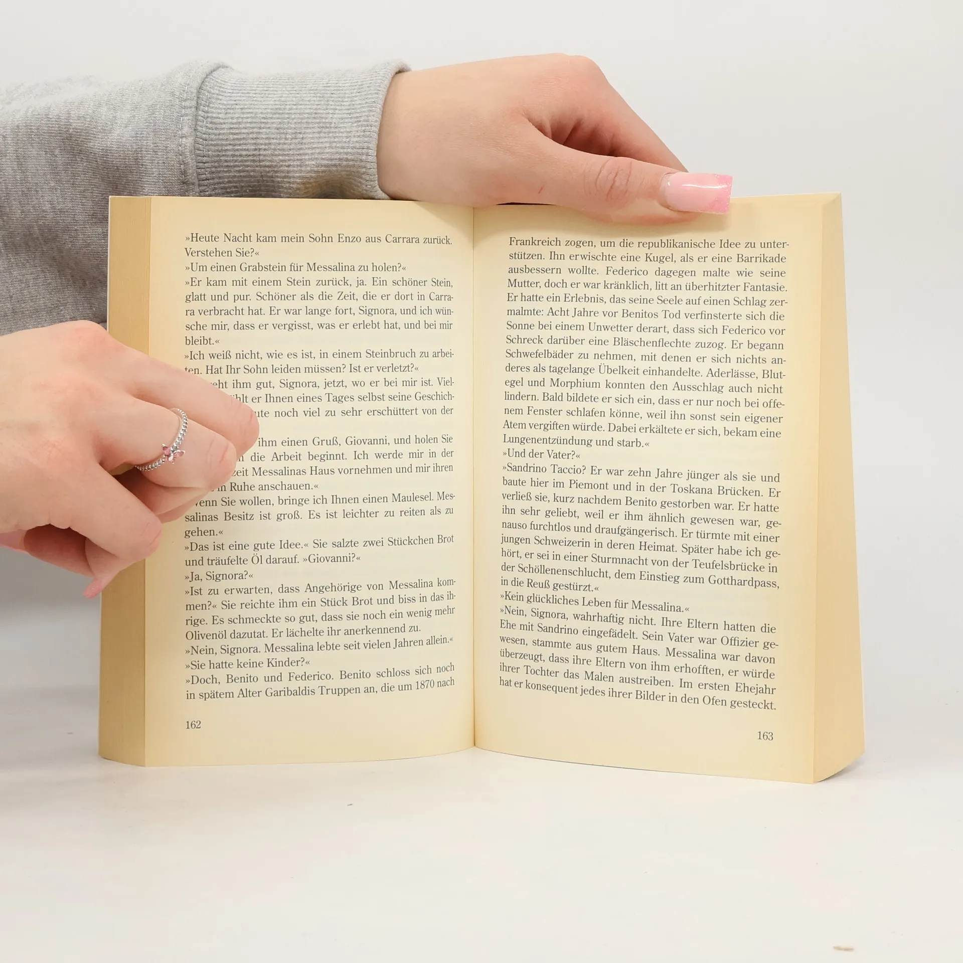 1890 reist die schöne Engländerin Fiona mit ihrem Mann nach Ligurien, denn sie ist eine begabte Malerin, die sich nach dem Licht des Südens sehnt. Fiona bekommt den Auftrag, den Genueser Tuchfabrikanten Fabricio Perlucci zu porträtieren, der jedoch eine Bedingung an das Bild knüpft: Im Hintergrund soll ein kostbares Damasttuch abgebildet sein, auf dem sich Blätter und goldseidene Oliven zu einem raffinierten Muster verweben. Während ihrer Arbeit verliebt sich Fiona leidenschaftlich in Perluccis Sohn. Doch dann ist eines Tages das geheimnisvolle ›Tuch des grünen Goldes‹ verschwunden, und Fiona wird des Diebstahls verdächtigt …