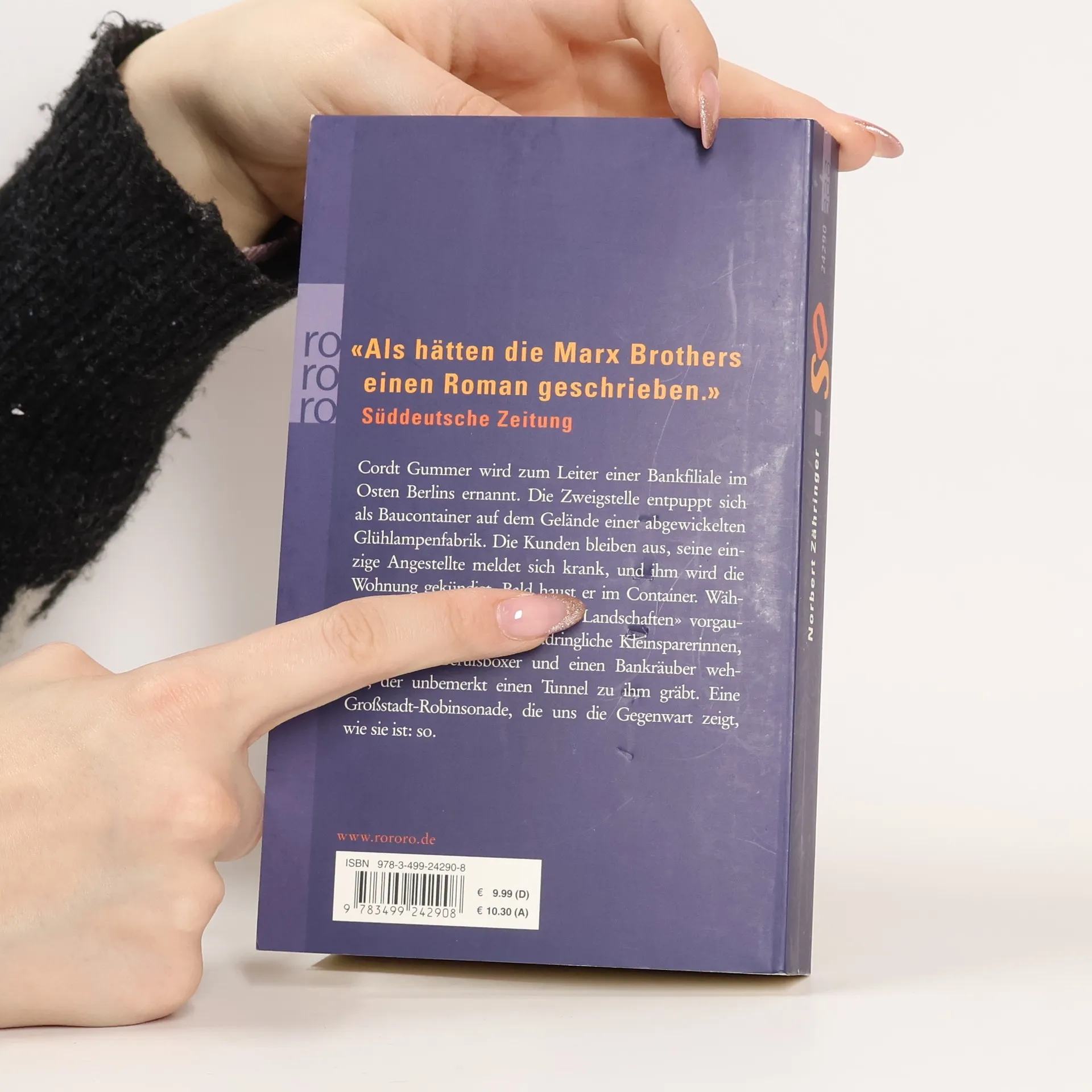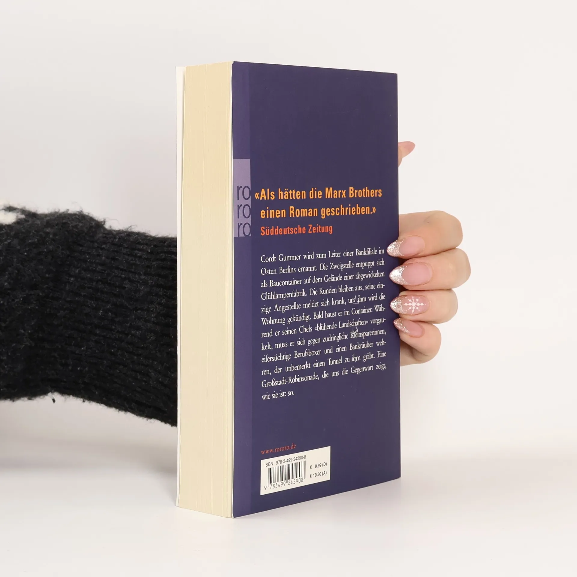 „Als hätten die Marx Brothers einen Roman geschrieben“ (Süddeutsche Zeitung) Cordt Gummer wird zum Leiter einer Bankfiliale im Osten Berlins ernannt. Die Zweigstelle entpuppt sich als Baucontainer auf dem Gelände einer abgewickelten Glühlampenfabrik. Die Kunden bleiben aus, seine einzige Angestellte meldet sich krank, und ihm wird die Wohnung gekündigt. Bald haust er im Container. Während er seinen Chefs „blühende Landschaften“ vorgaukelt, muss er sich gegen zudringliche Kleinsparerinnen, eifersüchtige Berufsboxer und einen Bankräuber wehren, der unbemerkt einen Tunnel zu ihm gräbt. Eine Großstadt-Robinsonade, die uns die Gegenwart zeigt, wie sie ist: so.
