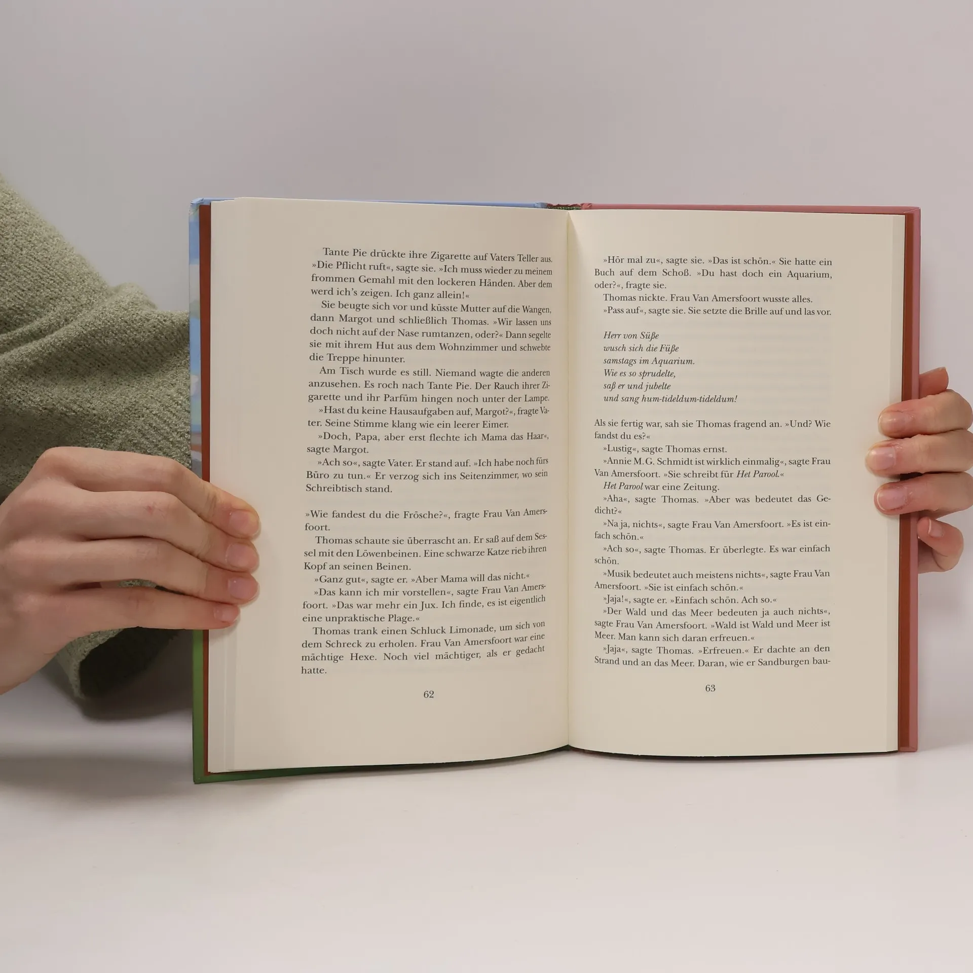 Ein Meisterwerk - anrührend und komisch, magisch und realistisch Thomas kann Dinge sehen, die andere nicht sehen können. Er sieht tropische Fische, die in den Grachten schwimmen und erfasst die Magie von Frau Amersfoort, der Nachbarin, die ihren Mann im Widerstand verloren hat. Er sieht die Schönheit von Elisa mit ihrem Bein aus Leder, das beim Gehen knirscht, und sogar Herrn Jesus, der Thomas anbietet, ihn einfach nur Jesus zu nennen. Vor manchen Dingen würde Thomas allerdings am liebsten die Augen verschließen. Aber er nimmt sich vor, dass er keine Angst mehr haben will. Und so wird er jeden Tag etwas mutiger und geht in kleinen Schritten seinen Weg. Ein Roman über eine Kindheit in den 50er Jahren - der zeitlose Fragen nach Liebe, Glaube, Freiheit und Glück thematisiert. Nominiert für den Deutschen Jugendliteraturpreis 2007 in der Kategorie Kinderbuch.