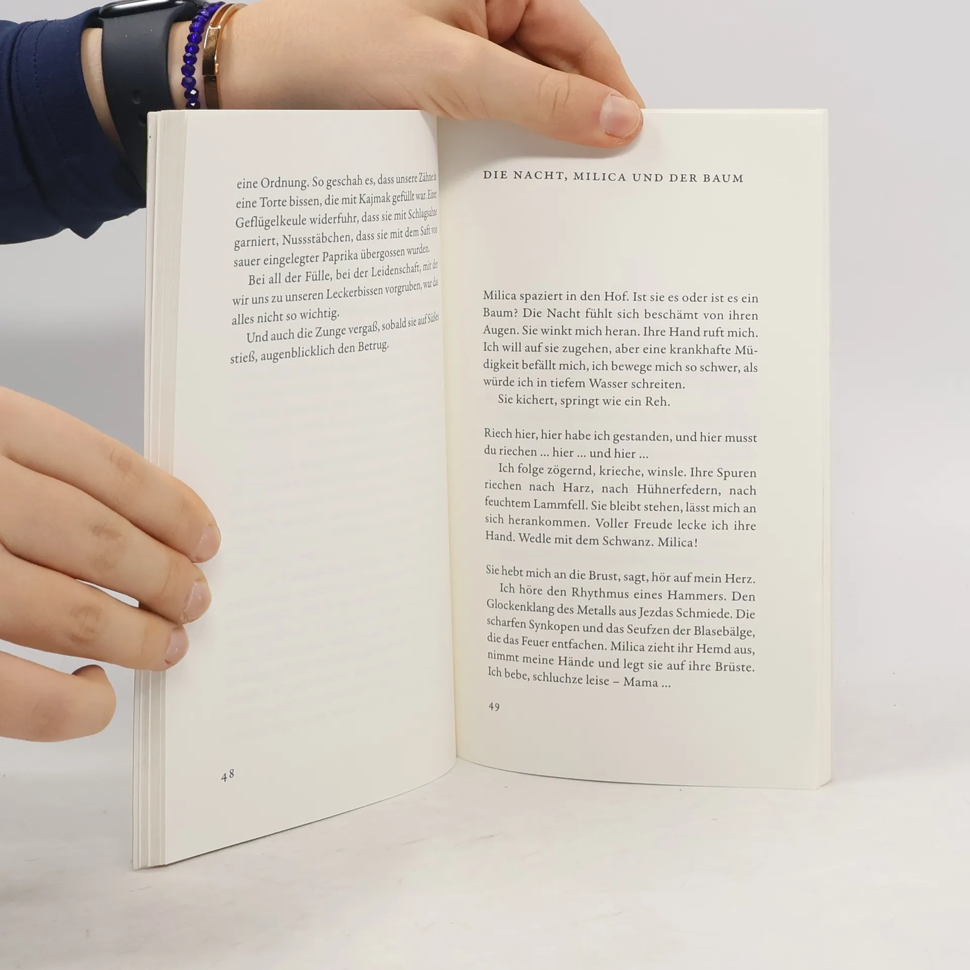 Es sind kleine, in sich geschlossene Prosatexte: eingefangene Augen-Blicke, Momentaufnahmen einer Kindheit im Zigeunerdorf. Wie leichtfüßige Musikstücke kommen sie daher – Bagatellen, Impromptus, Humoresken. Sie entfalten einen bald melancholischen, bald skurril-surrealen Zauber und klingen fast immer in einem überraschenden, manchmal verstörenden Schlussakkord aus. Jedes für sich, den Lyriker verratend, ein Stück aufs äußerste verdichteter Erinnerung. Aneinander gereiht erzählen sie vom turbulenten Leben in einer schäbigen Romasiedlung: von Dragiša, dem Saxophon spielenden Vater, vom Großvater, der im Suff deutsche Kommandos brüllt, von der mit Geistern kommunizierenden Großmutter, der Tante, die sich bei Bedarf imaginäre Krankheiten zulegt, und von der Mutter, die all das im Griff zu halten versucht; auch von Jacky, dem Hund, von geköpften Hühnern oder jenem Lamm, in dessen Augen sich der Junge wiedererkennt, bevor es am Georgstag auf den Tisch kommt. Von diesem etwas eigentümlichen Jungen vor allem, der staunend die Welt um sich und sich selbst in ihr beobachtet.