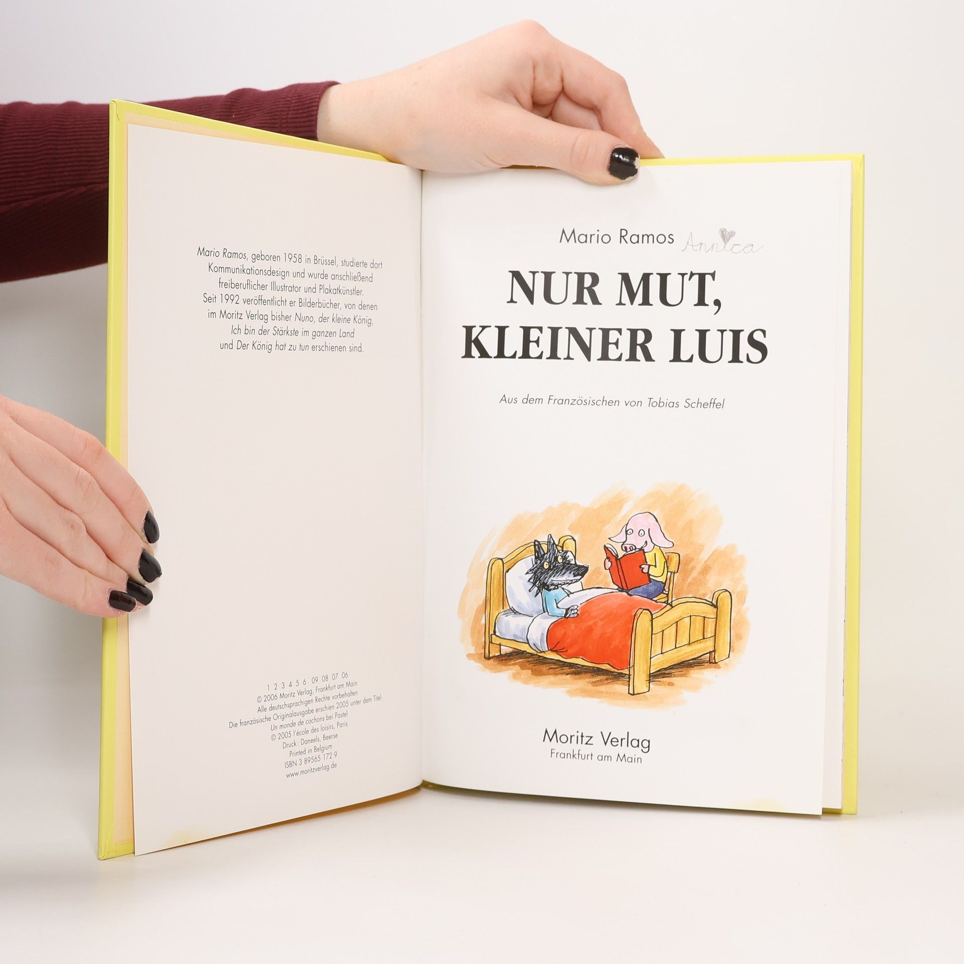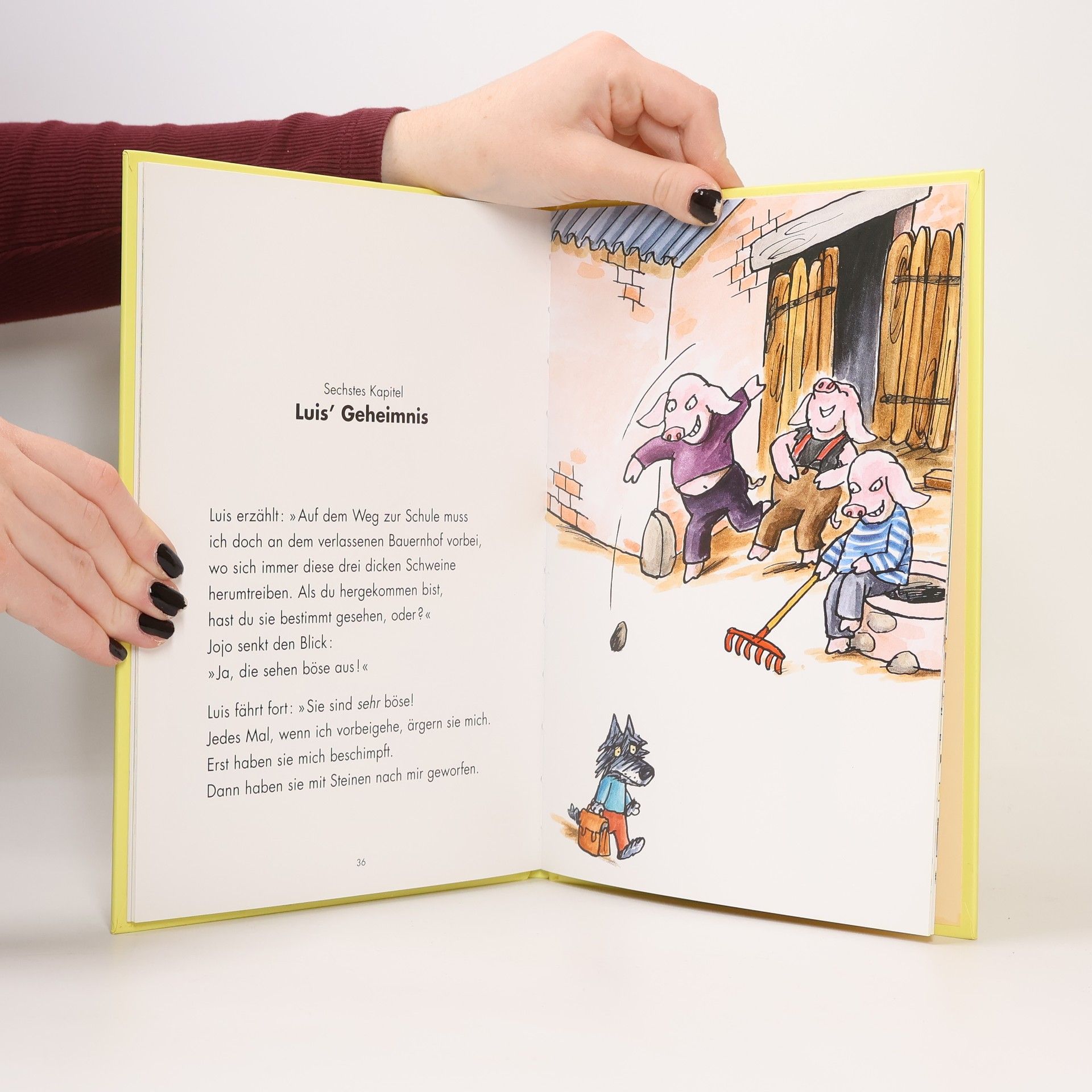 Luis ist neu in der Klasse. Aber als Wolf unter lauter Schweinen tut er sich schwer. Spannende Lektüre für Erstleser! Ausgerechnet in die Klasse der Schweinekinder soll der kleine Luis gehen! Dabei ist er doch ein Wolf! Schnell ist er der Buhmann. Doch wenigstens gibt es dort Jojo, der sich mit ihm anfreundet und ihn besucht, als er krank wird. Dabei erfährt er, dass drei fiese Schweine Luis bedrohen und er Angst davor hat, weiterhin zur Schule zu gehen. Jojo sinnt auf Abhilfe und hat eine fantastische Idee. Diese humorvolle und spannende Geschichte des belgischen Autors und Zeichners ist beste Lektüre für Erstleser!