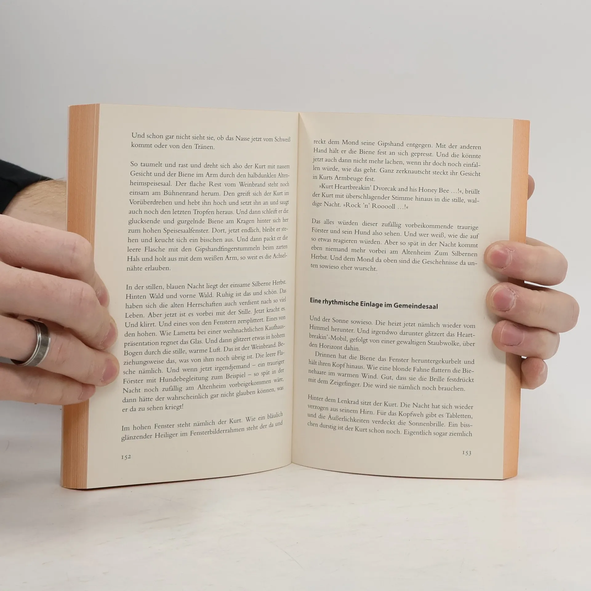 16-jährig, pummelig, klein, eigenwillig, Brillengläser wie Bierkrugböden und ein blonder, schräg vom Kopf abstehender „Pferdestummel“. Das ist Biene. Biene ist aus dem Mädchenheim geflüchtet und trifft an einem gottverlassenen Bahnhof auf den kettenrauchenden und versoffenen Schlagersänger Kurt. Gemeinsam touren Biene und Kurt nun im scheppernden aber glitzernden „Heartbreakin´-Mobil“ durch die Provinz, spielen in Wirtshäusern, Altenheimen und Zuchttierhallen, treffen auf gewaltige Bauern, tanzende Polizisten, Wirtinnen in roten Overalls, auf über tausend Truthahnküken und erleben auch sonst einige recht bemerkenswerte Abenteuer. Und ihnen wird klar, dass sie eigentlich beide auf der Suche nach Liebe sind. Eine atmosphärische Geschichte über Freiheit, Sehnsucht, die Provinz und zwei liebenswerte Außenseiter.
