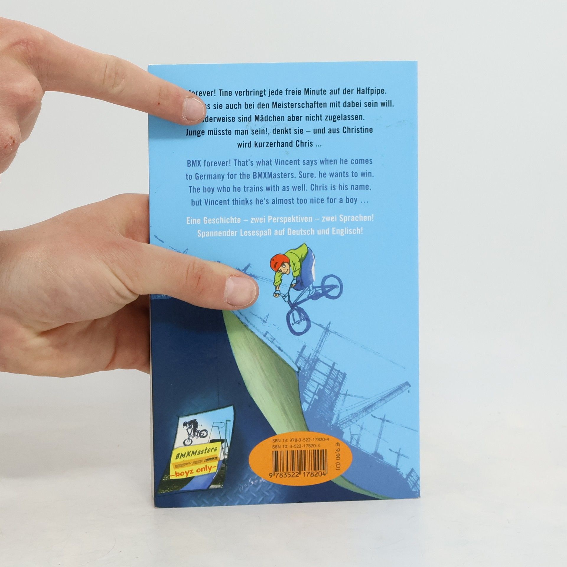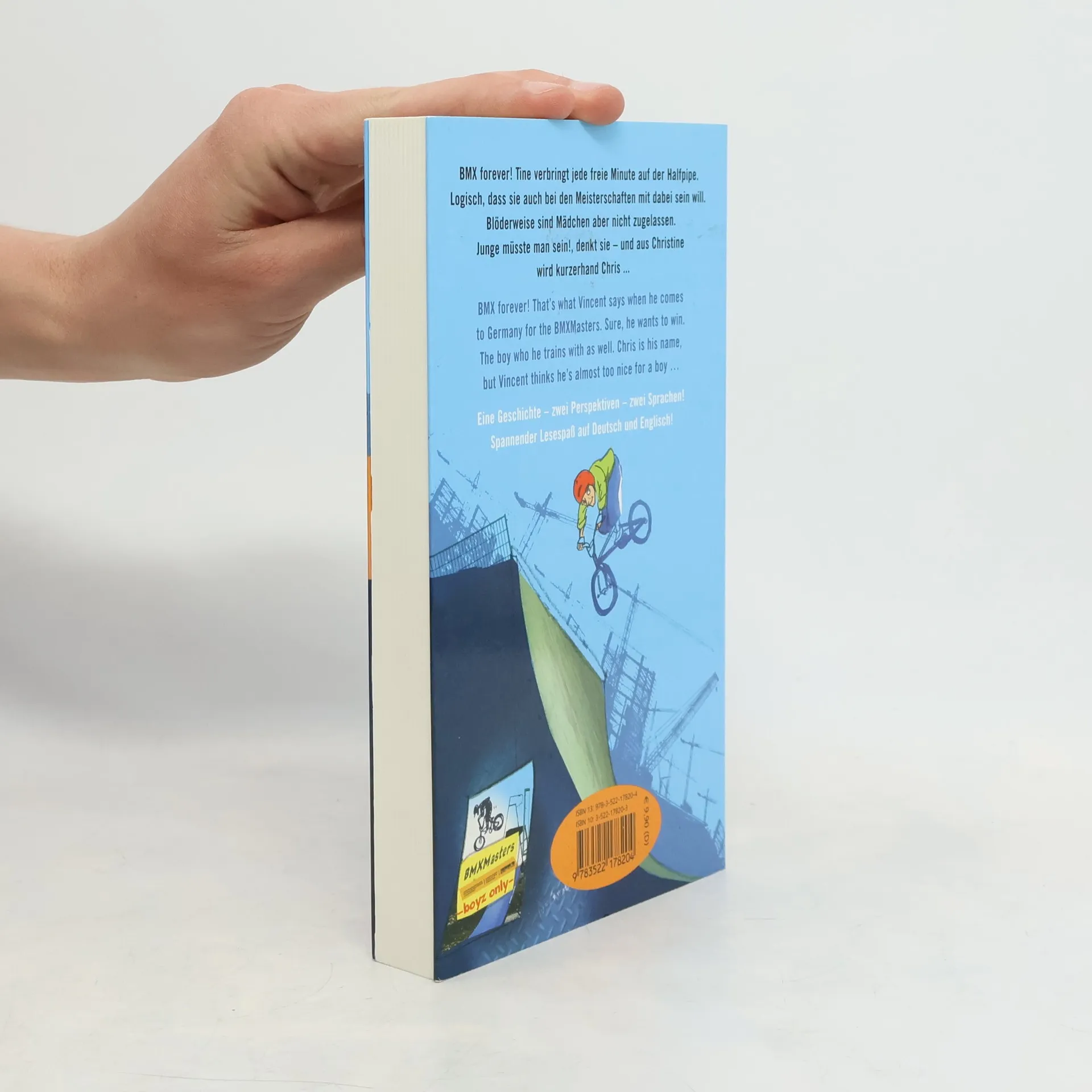 Englisch - echt easy! Kaum zu glauben: Tine hat es geschafft! Sie ist zugelassen zu den BMXMasters! Allerdings musste sie dafür einiges in Kauf nehmen: die Haare abschneiden, ihren Rock gegen Baggy-Hosen eintauschen, rumrotzen wie ein Junge und sich ständig an den nicht vorhandenen Eiern kratzen. Denn nur Jungs sind zum Wettbewerb zugelassen: Keine Chance für Mädchen! Und ausgerechnet jetzt muss Tine sich in Vincent verlieben, der sie logischerweise für einen Jungen hält und damit ein ziemliches Problem hat. Eine Geschichte - zwei Perspektiven - zwei Sprachen! Spannender Lesespaß auf Deutsch und Englisch! Ab 12 Jahren