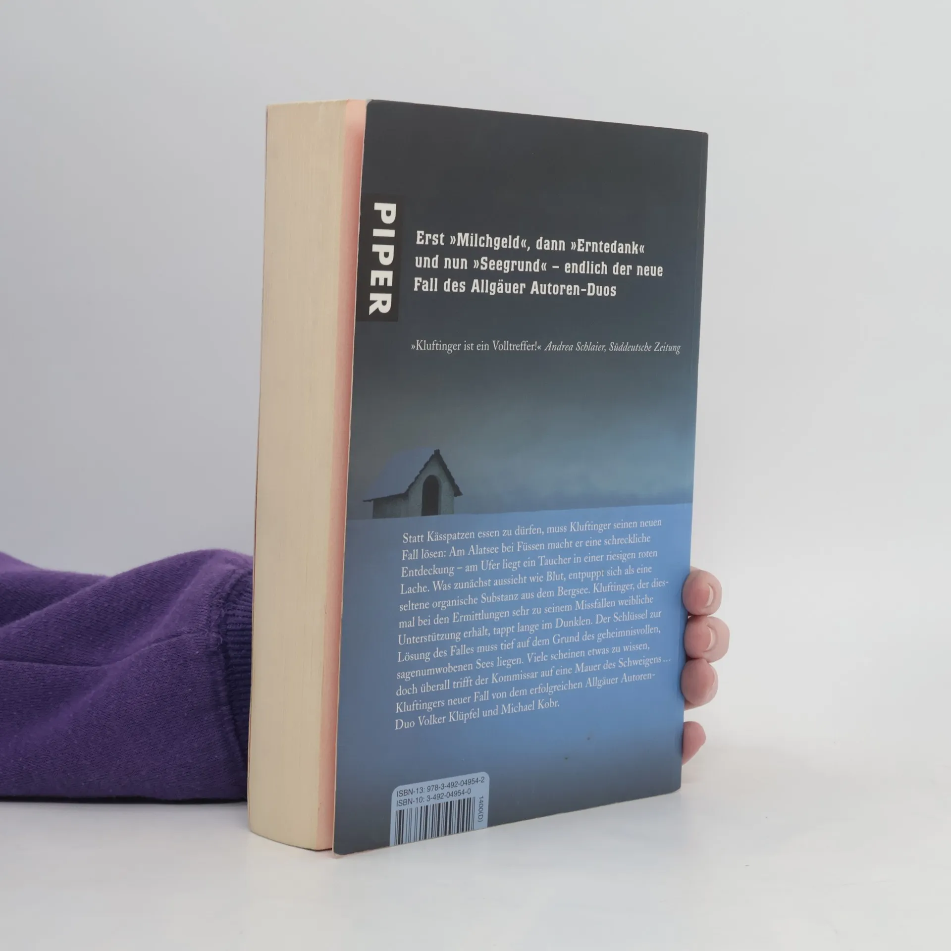 Erst die Überraschungserfolge 'Milchgeld', dann 'Erntedank' und nun 'Seegrund' – endlich der neue Fall des Allgäuer Kommissars Kluftinger des Bestsellerduos Volker Klüpfel und Michael Kobr. 'Kommissar Kluftinger hat in seinen Kniebundhosen das Zeug zum Columbo von Altusried!', jubelte 'Die Welt' über den kultigen Kommissar. Statt Kässpatzen essen zu dürfen, muss Kluftinger nun seinen neuen Fall lösen: Am Alatsee bei Füssen macht er eine schreckliche Entdeckung – am Ufer liegt ein lebloser Taucher in einer riesigen roten Lache. Was zunächst aussieht wie Blut, entpuppt sich als eine seltene organische Substanz aus dem Bergsee. Kluftinger, der diesmal bei den Ermittlungen sehr zu seinem Missfallen weibliche Unterstützung erhält, tappt lange im Dunkeln. Der Schlüssel zur Lösung des Falles muss tief auf dem Grund des geheimnisvollen, sagenumwobenen Sees liegen. Viele scheinen etwas zu wissen, doch überall trifft der Kommissar auf eine Mauer des Schweigens … Kluftingers neuer Fall von dem erfolgreichen Allgäuer Autorenduo Volker Klüpfel und Michael Kobr. Rechtlicher Hinweis: Der Filmemacher und Naturfilmer Florian Guthknecht, der u. a. 2004 den Film 'Der blutende See' produziert hat, hat mit der Romanfigur gleichen Namens Florian Guthknecht nichts zu tun.