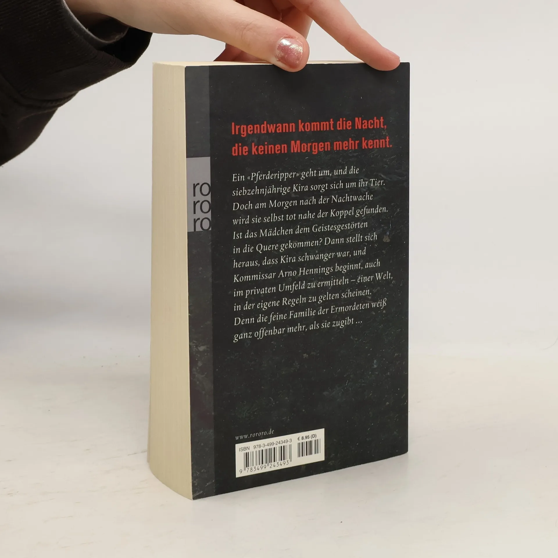 Kira wollte unbedingt ihr Pferd vor dem «Pferderipper» beschützen. Doch am Morgen nach der Nachtwache liegt die Siebzehnjährige tot nahe der Koppel. War das Mädchen dem «Ripper» in die Quere gekommen? Dann stellt sich heraus, dass Kira schwanger war, und Kommissar Arno Hennings beginnt, auch im privaten Umfeld zu ermitteln einer Welt, in der eigene Regeln zu gelten scheinen. Denn die feine Familie der Ermordeten weiß ganz offenbar mehr, als sie zugibt ...