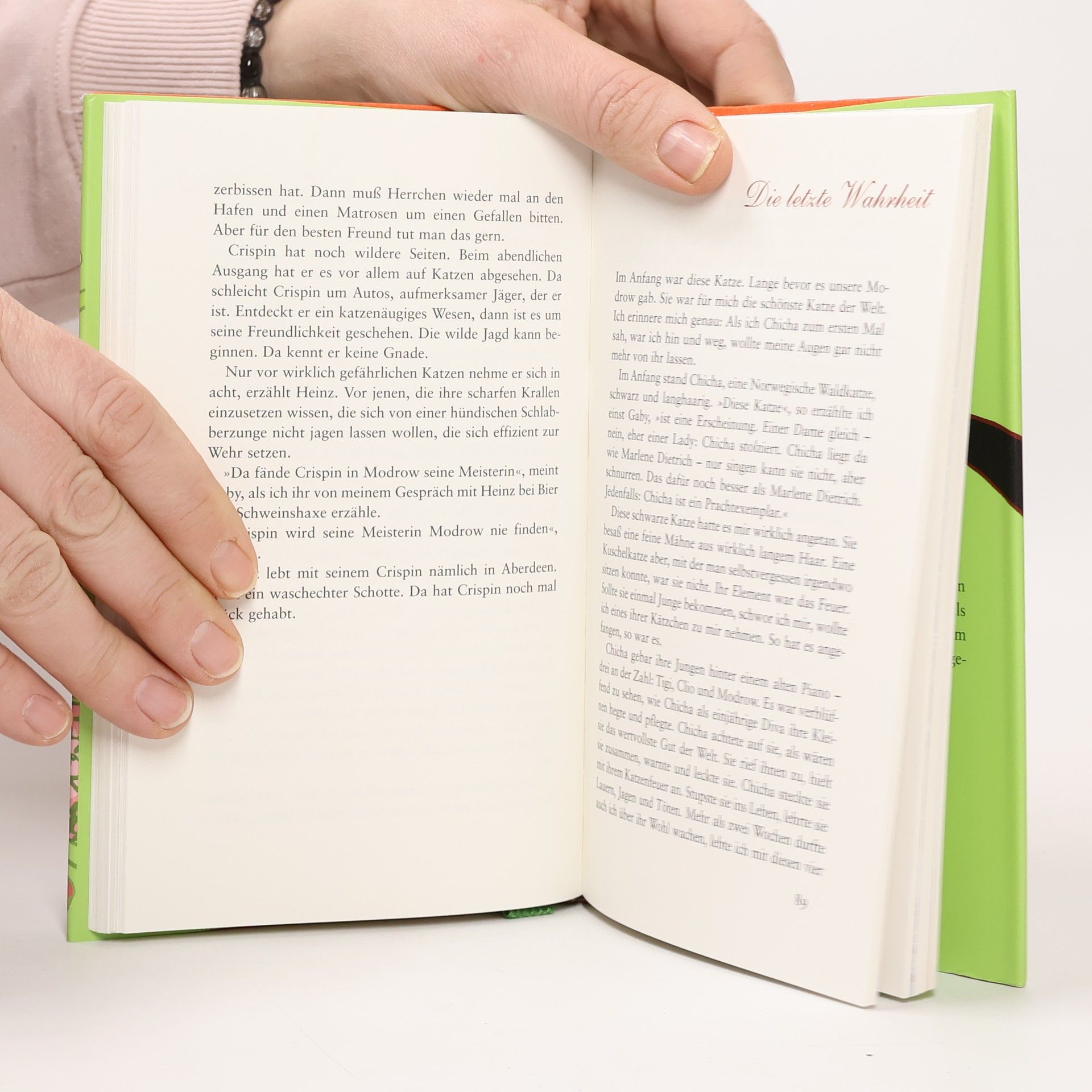 Katzen und Bücher haben vieles gemeinsam. Sie leisten uns Gesellschaft, liegen in unserem Schoß, bringen uns zum Denken, Fühlen, Lachen. Ja, Katzen und Bücher machen glücklich. Sie geben uns Gelegenheit, menschlich zu sein. Das ist gut. Gibt es Besseres? Ja: Bücher in Gesellschaft einer Katze zu lesen. Sie ringelt sich auf dem Schoß ein. Oder sie ruht auf unserem Arm, bis sie und er eingeschlafen sind. Am wahrscheinlichsten aber legt sie sich auf das Buch – schließlich sind Katzen Anarchisten. Deshalb ist es am besten, mit einer Katze ein Katzenbuch zu lesen. Zum Beispiel das Buch Modrow. Aus diesem können beide etwas fürs Leben lernen. Wie man fliegende Mäuse fängt. Oder wieso man manchmal getigert ist, manchmal nicht. Und – am wichtigsten! – was Gaby dazu sagt. Modrow von Peter Exinger ist ein Buch, das leise schnurrt, wenn man es ans Ohr hält. Ganz leise.