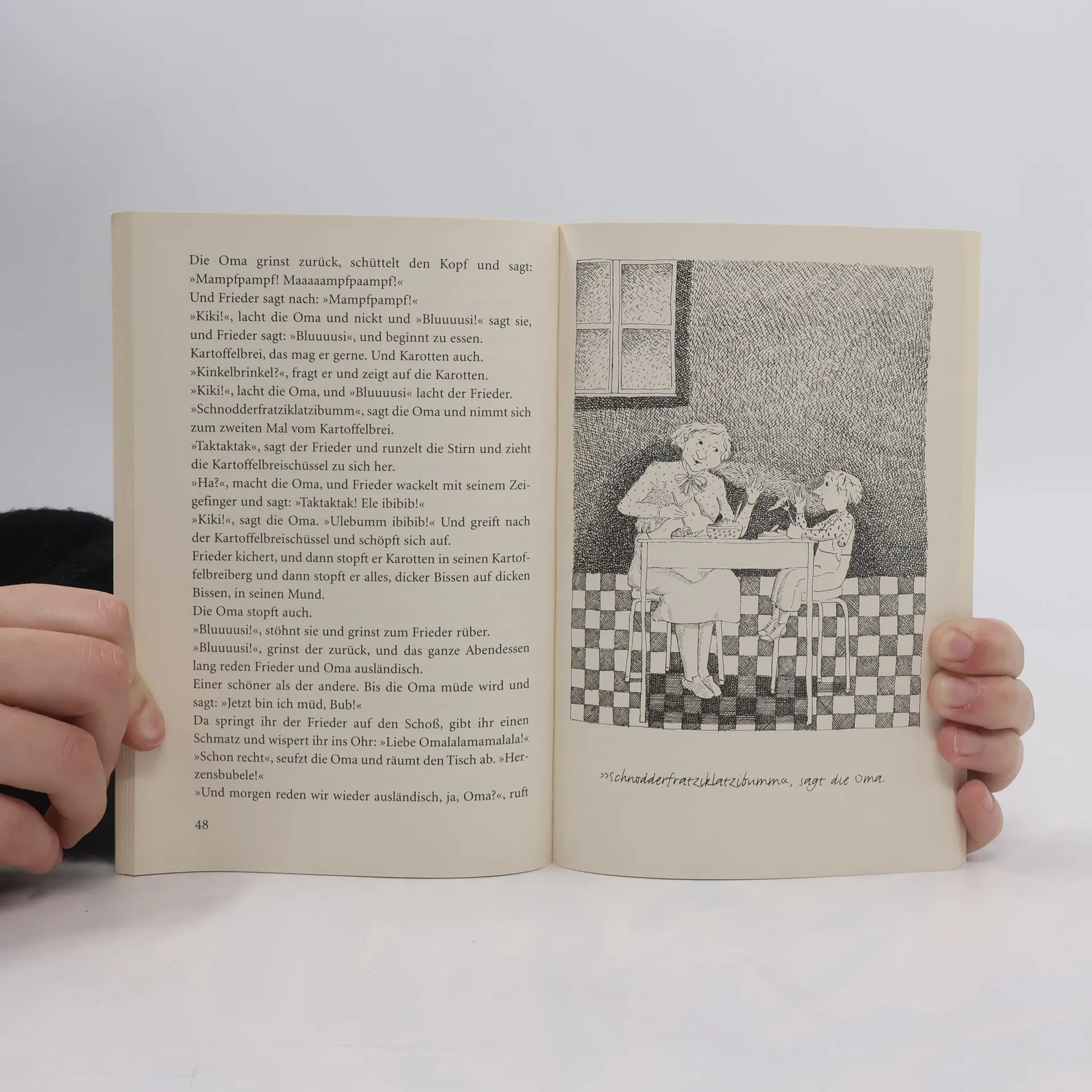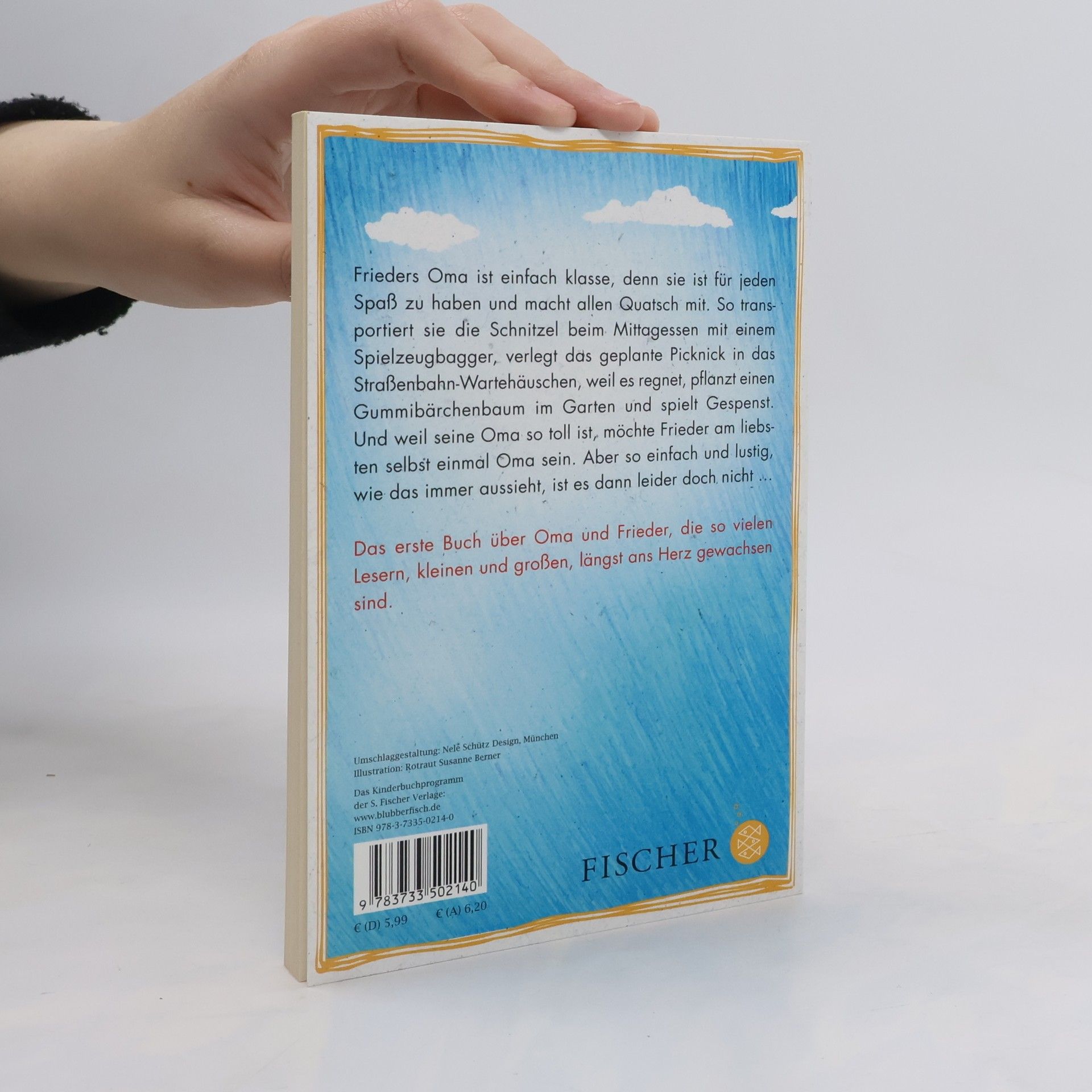 Der Kinderbuchklassiker: Die Geschichten von Frieder und seiner Oma Oma und Frieder sind ein super Team: der Frieder und seine Oma, die immer auf ihren Enkel eingeht und jeden Quatsch mitmacht. Sie transportiert die Schnitzel beim Mittagessen mit einem Spielzeugbagger, verlegt das geplante Picknick in das Straßenbahn-Wartehäuschen, weil es regnet, pflanzt einen Gummibärchenbaum im Garten und spielt Gespenst. 16 witzige und phantasievolle Alltagsgeschichten perfekt zum Vorlesen! Band 1 von Oma und Frieder, die so vielen Lesern, kleinen und großen, längst ans Herz gewachsen sind.