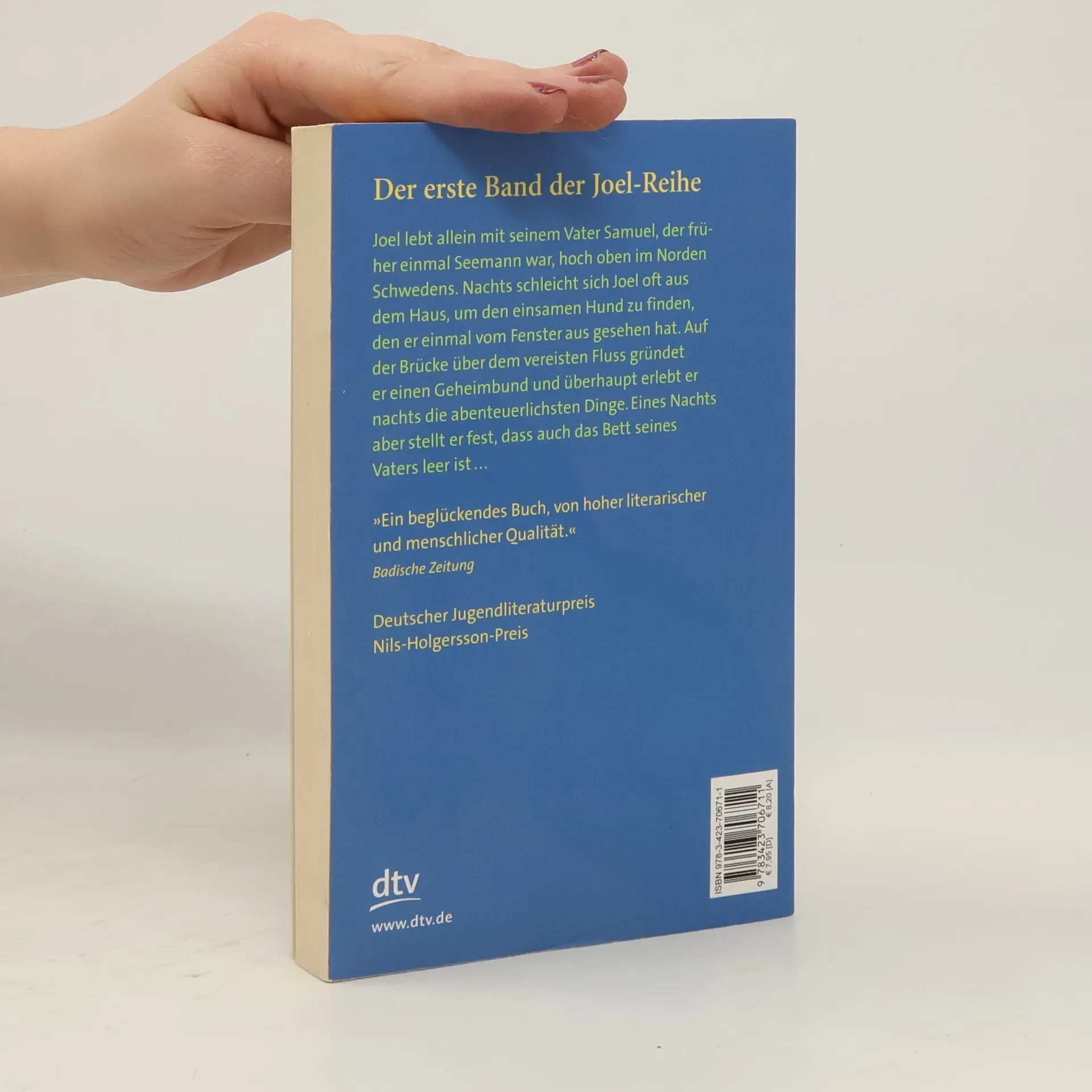 Joel lebt allein mit seinem Vater Samuel, der früher einmal Seemann war, hoch oben im Norden Schwedens. Nachts schleicht sich Joel oft aus dem Haus, um den einsamen Hund zu finden, den er einmal vom Fenster aus gesehen hat. Auf der Brücke über dem vereisten Fluss gründet er einen Geheimbund und überhaupt erlebt er nachts die abenteuerlichsten Dinge. Eines Nachts aber stellt er fest, dass auch das Bett seines Vaters leer ist. Samuel hat sich nämlich in die Kellnerin Sara verliebt. Wird auch er Joel verlassen, genau wie es vor vielen Jahren die Mutter getan hat? Der erste Band der Joel-Reihe von Henning Mankell. Mit dem Deutschen Jugendliteraturpreis ausgezeichnet.
