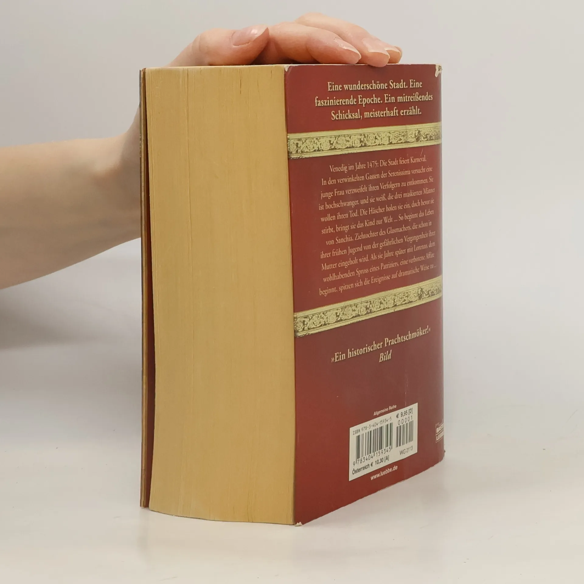Venedig im Jahre 1475: Die Stadt feiert Karneval. In den verwinkelten Gassen der Serenissima versucht eine junge Frau verzweifelt, ihren Verfolgern zu entkommen. Sie ist hochschwanger, und sie weiß, die drei maskierten Männer wollen ihren Tod. Die Häscher holen sie ein, doch bevor sie stirbt, bringt sie das Kind zur Welt ... So beginnt das Leben von Sanchia, Ziehtochter des Glasmachers, die schon in ihrer frühen Jugend von der gefährlichen Vergangenheit ihrer Mutter eingeholt wird. Als sie Jahre später mit Lorenzo, dem wohlhabenden Spross eines Patriziers, eine verbotene Affäre beginnt, spitzen sich die Ereignisse auf dramatische Weise zu ... Ein prächtiger historischer Bilderbogen voller Abenteuer, Intrigen und Leidenschaft – ausgebreitet vor der einzigartigen Kulisse Venedigs
