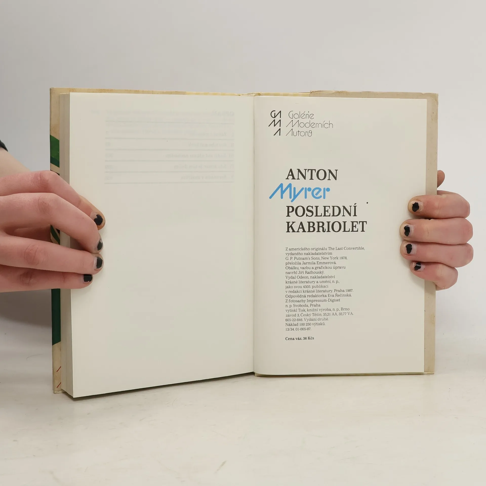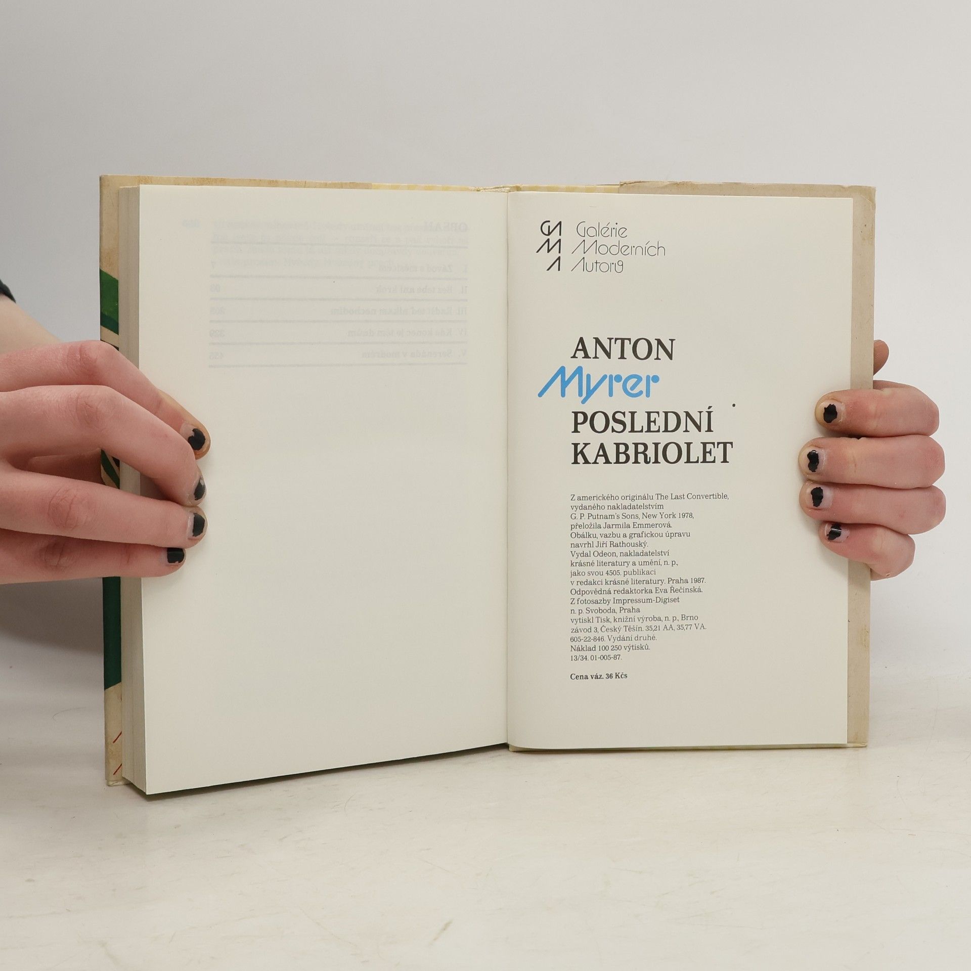 Poslední kabriolet, Anton Myrer, Jarmila Emmerová