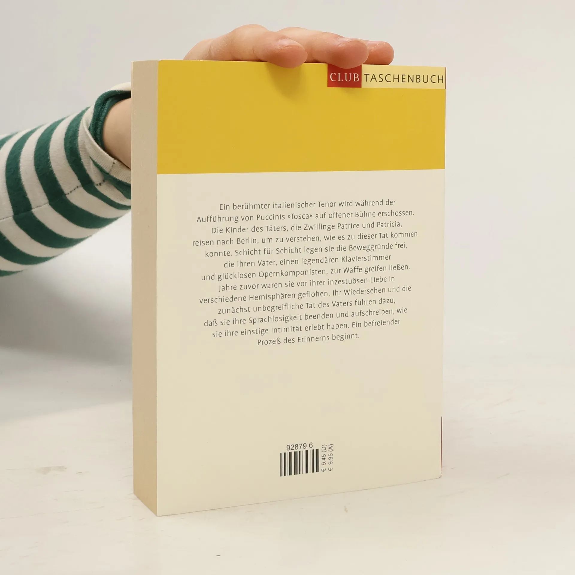 Ein berühmter italienischer Tenor wird während der Aufführung von Puccinis „Tosca“ auf offener Bühne erschossen. Die Kinder des Täters, die Zwillinge Patrice und Patricia, reisen nach Berlin, um zu verstehen, wie es zu dieser Tat kommen konnte. Schicht für Schicht legen sie die Beweggründe frei, die ihren Vater, einen legendären Klavierstimmer und glücklosen Opernkomponisten, zur Waffe greifen ließen. Jahre zuvor waren sie vor ihrer inzestuösen Liebe in verschiedene Hemisphären geflohen. Ihr Wiedersehen und die zunächst unbegreifliche Tat des Vaters führen dazu, daß sie ihre Sprachlosigkeit beenden und aufschreiben, wie sie ihre einstige Intimität erlebt haben. Ein befreiender Prozeß des Erinnerns beginnt.