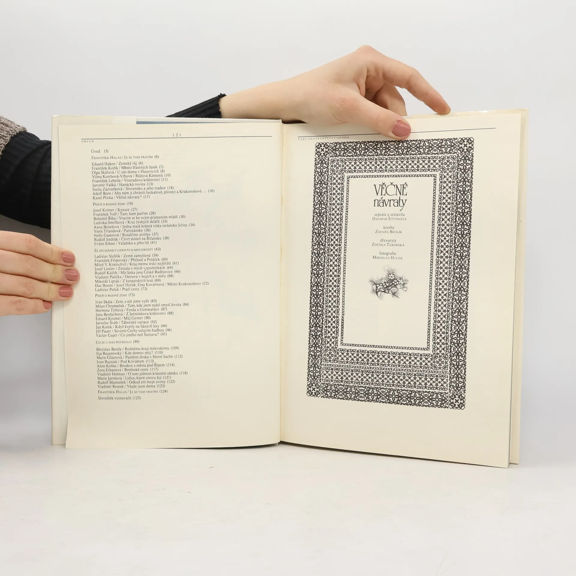 Kniha z členské knižnice nakladatelství Svoboda. Stovky barevných i černobílých fotografií, maleb, náčrtů a kreseb. Kniha, upravená formou "koláže" beletristických děl, o naší domovině v próze, ale částečně i v poezii.