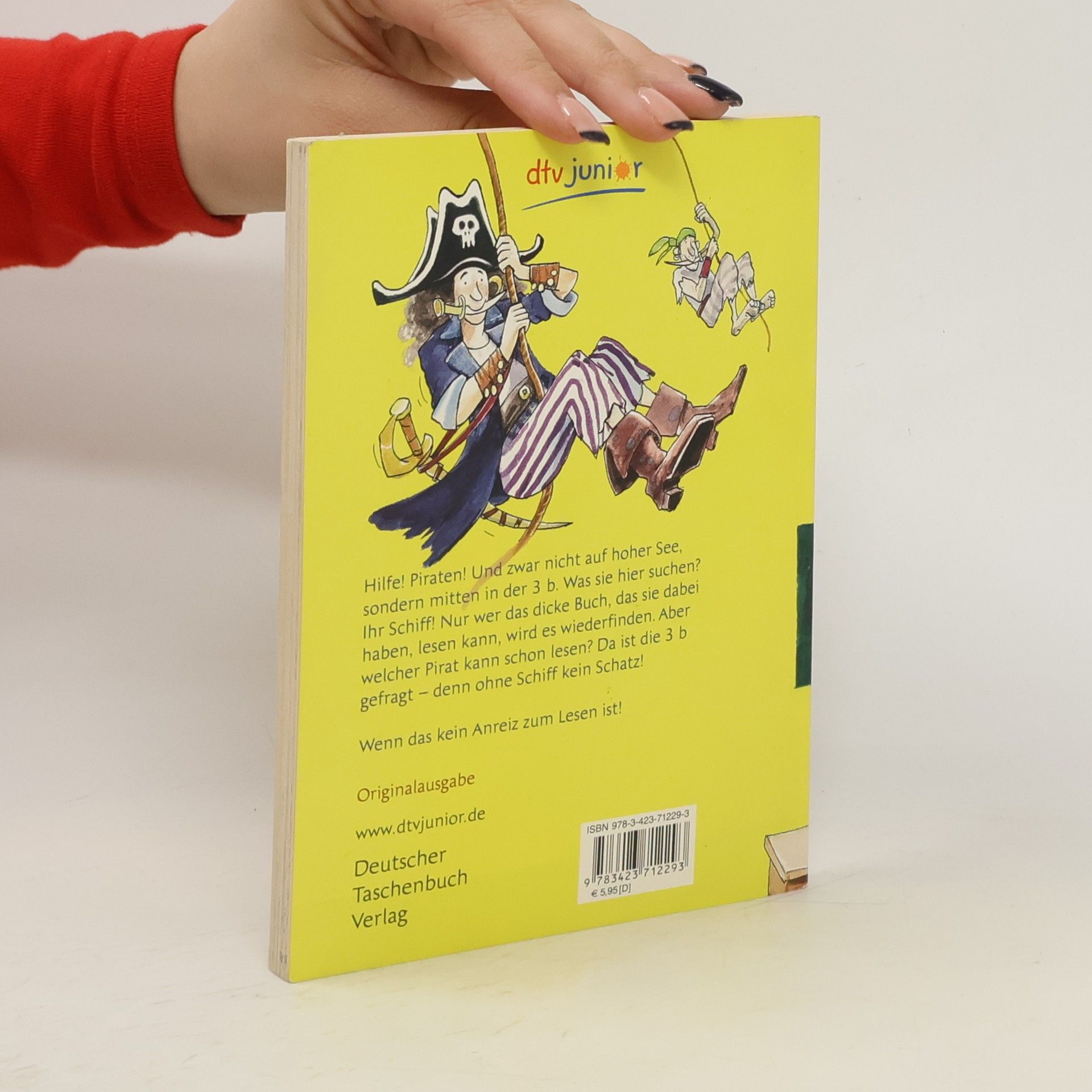 »Ach, du dickes Ei! Piraten!« Eigentlich will Jonni nur ganz leise die Tür zum Klassenzimmer der 3b öffnen und sich möglichst unauffällig an seinen Platz schleichen, damit der strenge Lehrer Knickel nicht merkt, dass er zu spät ist, aber ... - das darf doch nicht wahr sein! Da hocken mindestens zwölf gefährlich aussehende Gestalten auf dem Lehrerpult und auf den Fensterbänken. Jonni begreift schnell: Das sind Piraten und sie haben die Klasse geentert! Etwas länger dauert es, bis er kapiert, was sie wollen: Sie haben ein dickes Buch dabei und darin steht angeblich, wo ihr Schiff geblieben ist, das ihnen offenbar abhanden kam. Ohne Schiff aber können sie den Schatz im Tintensee nicht heben, hinter dem sie her sind, ganz klar. Dummerweise ist der Einzige, der hier richtig lesen kann, Herr Knickel - und den haben die Piraten in den Bastelschrank gesperrt. Wie die Piraten wieder an ihr Schiff, der Lehrer aus dem Schrank und Jonni und die Klasse 3b schließlich an einen echten Piratenschatz kommen und was das alles mit dem Buch zu tun hat, das die Piraten mit sich herumschleppen, das wird allerdings nur erfahren, wer die ganze Geschichte liest. Denn die erzählt alles, aber auch wirklich alles, was man über Seeräuber wissen muss … Zu diesem Buch finden Sie Quizfragen auf antolin. de