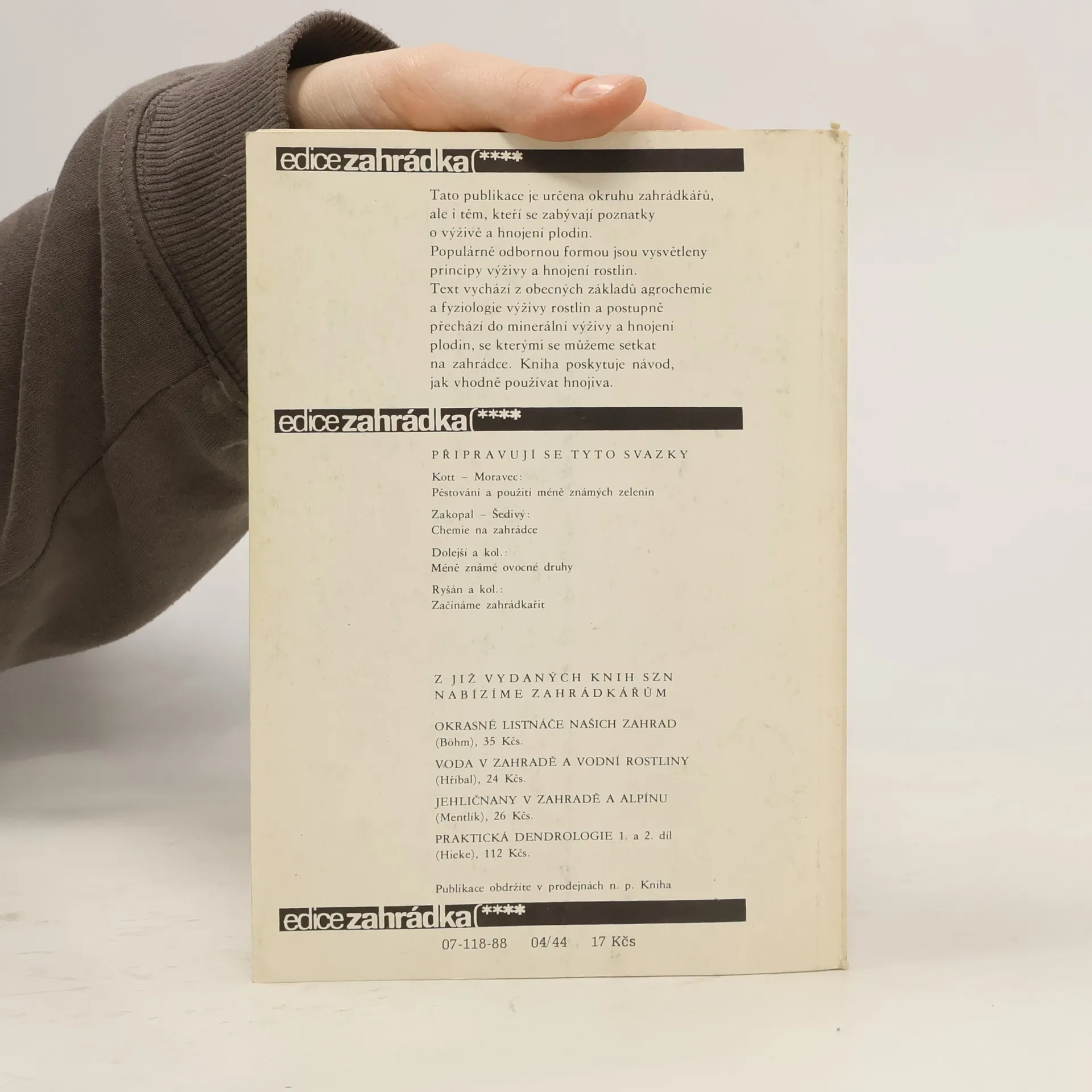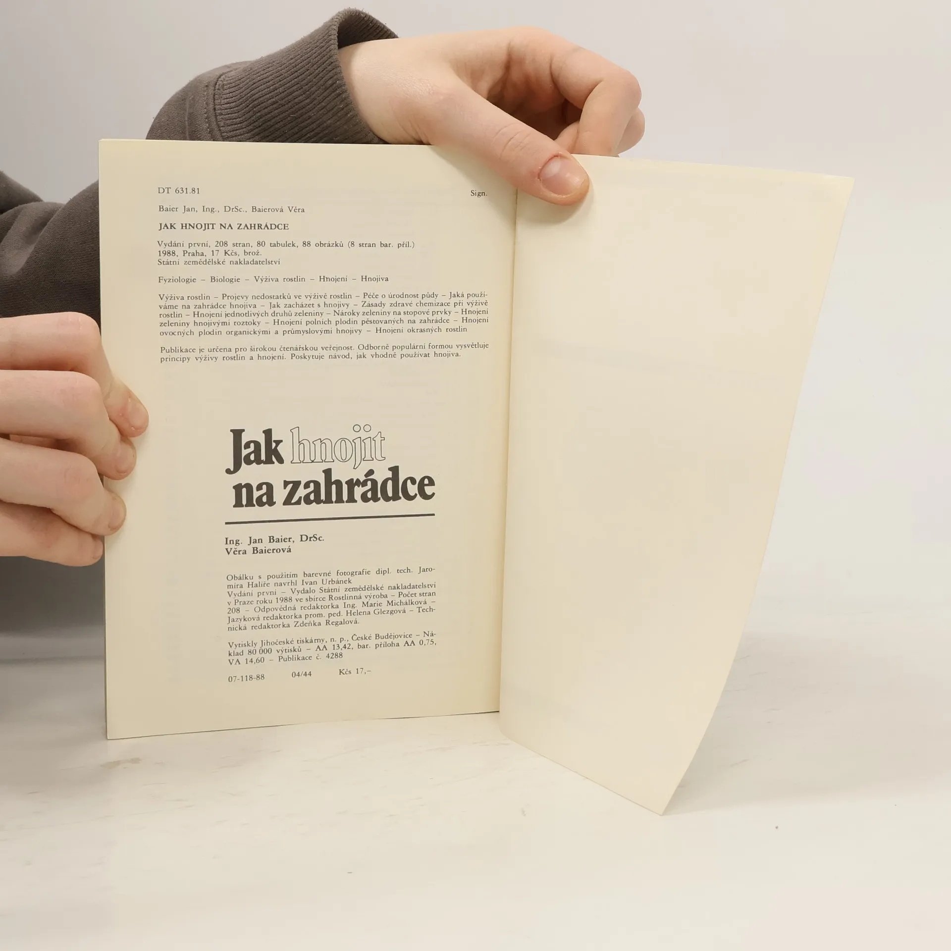 Publikace je určena pro širokou čtenářskou veřejnost. Populárně odbornou formou vysvětluje principy výživy rostlin a hnojení zeleniny, ovocných plodin a okrasných rostlin. Poskytuje návod, jak vhodně používat organická i průmyslová hnojiva.