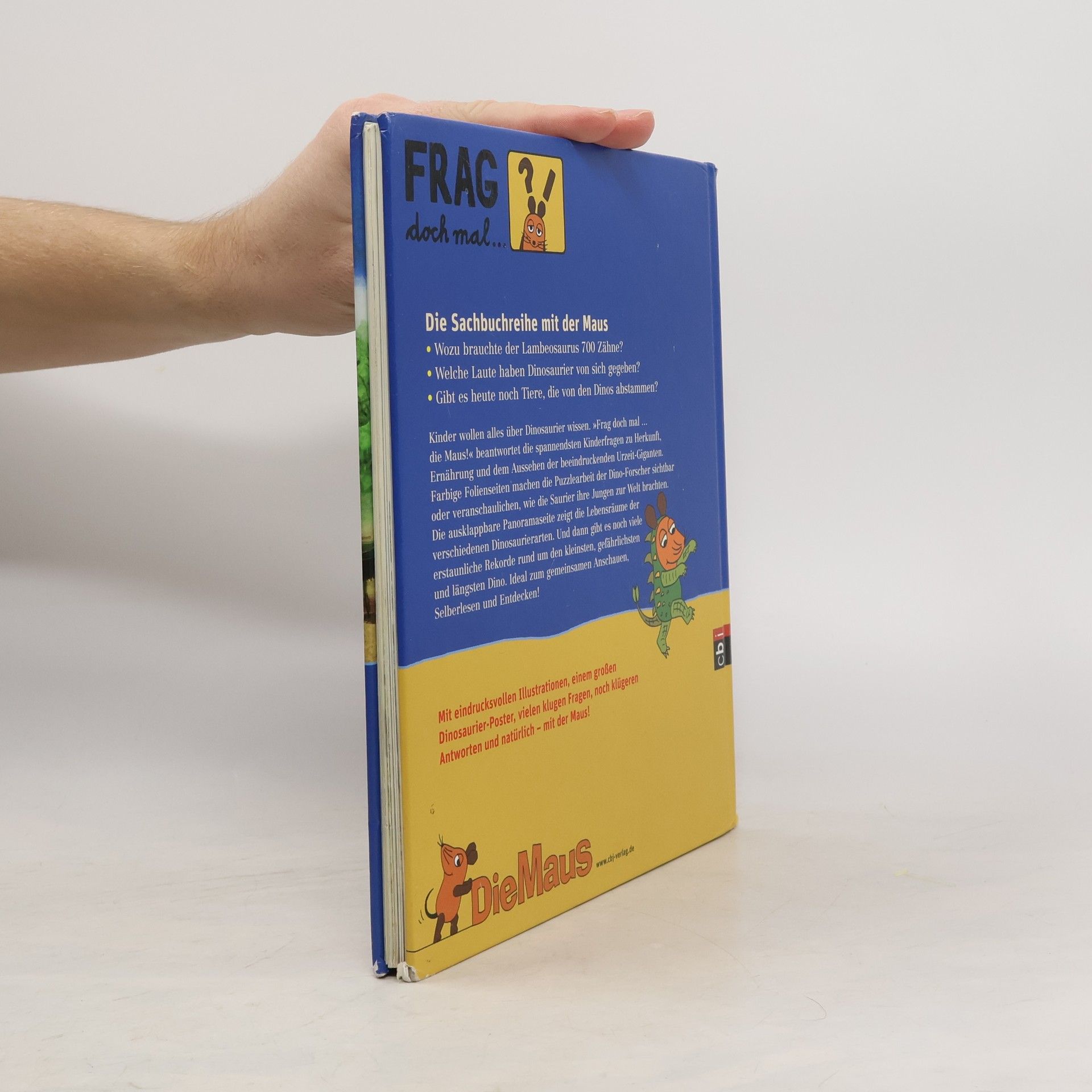 Wenn Kinder Fragen stellen und Erwachsene nicht weiter wissen, heißt es: „Frag doch mal ... die Maus!“ Seit 35 Jahren haben die „Sachgeschichten“ in vielen Familien einen besonderen Stellenwert. Die „Sendung mit der Maus“ ist ein Klassiker, der sowohl Kinder als auch Erwachsene fesselt, indem er die Welt auf verständliche Weise erklärt. Das Erfolgsprinzip besteht darin, die Fragen von Kindern ernst zu nehmen und sie intensiv zu behandeln. Die Sachbuchreihe folgt diesem Ansatz: Einfache, verblüffende Fragen wecken das Interesse an komplexen Themen, die Schritt für Schritt spielerisch und kindgerecht erklärt werden. Ein Beispiel ist die Frage, warum der Lambeosaurus 700 Zähne braucht. Die Maus beantwortet knifflige Fragen zu Verteidigung, Ernährung und Körperbau dieser faszinierenden Echsen. Farbige Folienseiten zeigen die Puzzlearbeit der Paläontologen und das Innere eines Sauriergeleges. Ausklappbare Panoramaseiten präsentieren das Erdmittelalter mit seinen Sauriern in zeitlicher Abfolge. Ein großformatiges Poster mit Urzeitechsen ist ein echter Eye-Catcher. Jeder Band bietet: wichtige Schlüsselthemen, Antworten auf Kinderfragen, sorgfältig recherchierte Informationen von renommierten Autoren, kindgerechte Bebilderung und zahlreiche Fotos, die die Texte unterstützen. Die enge Zusammenarbeit mit der MAUS-REDAKTION garantiert Qualität und Originalität der Sachtexte. Hochwertige Ausstattung und zahlreiche Extras unterstreiche