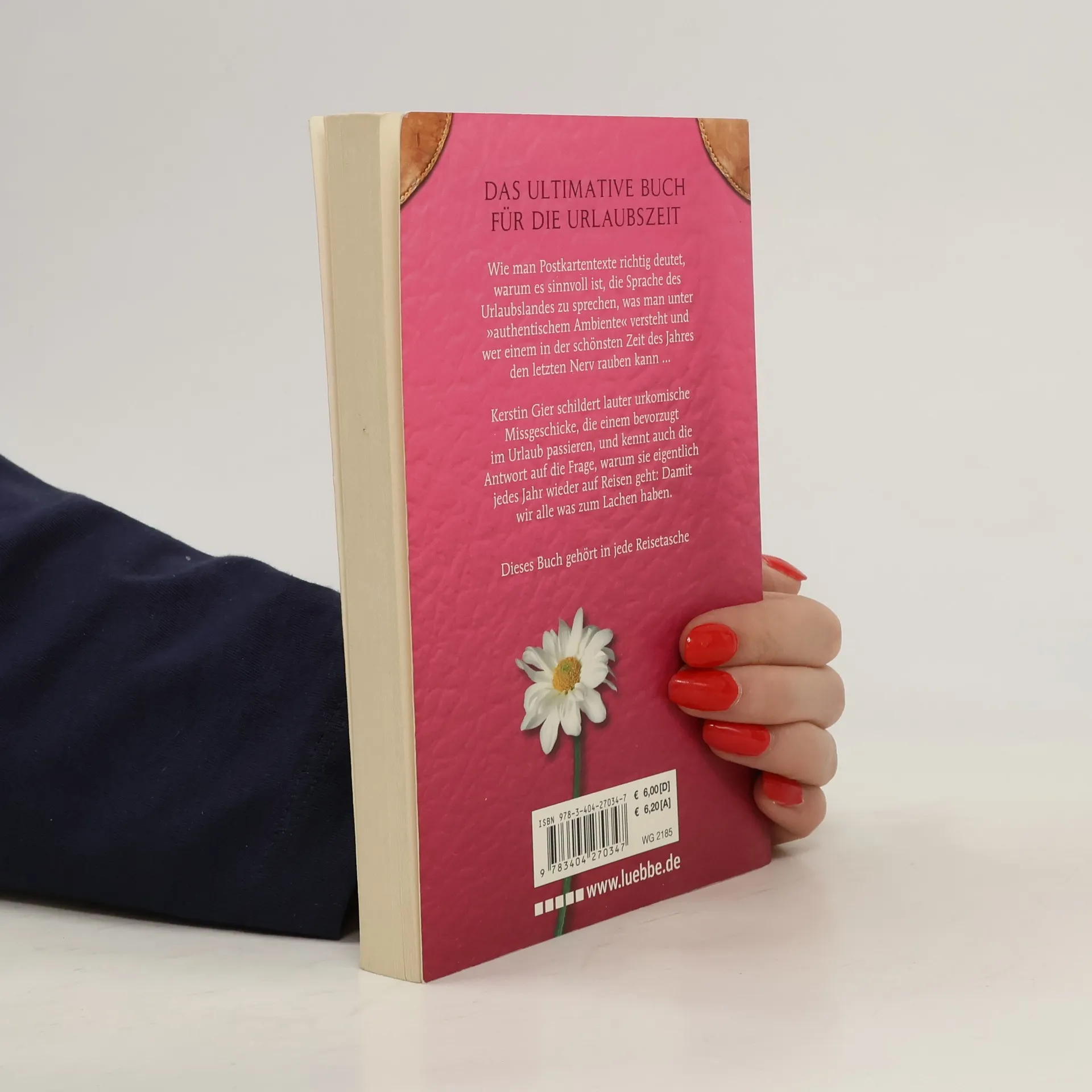 Dieses Buch gehört in jede Reisetasche Wie man Postkartentexte richtig deutet, warum es sinnvoll ist, die Sprache des Urlaubslandes zu sprechen, was man unter „authentischem Ambiente“ versteht und wer einem in der schönsten Zeit des Jahres den letzten Nerv rauben kann ... Kerstin Gier schildert lauter urkomische Missgeschicke, die einem bevorzugt im Urlaub passieren, und kennt auch die Antwort auf die Frage, warum sie eigentlich jedes Jahr wieder auf Reisen geht: Damit wir alle was zum Lachen haben.