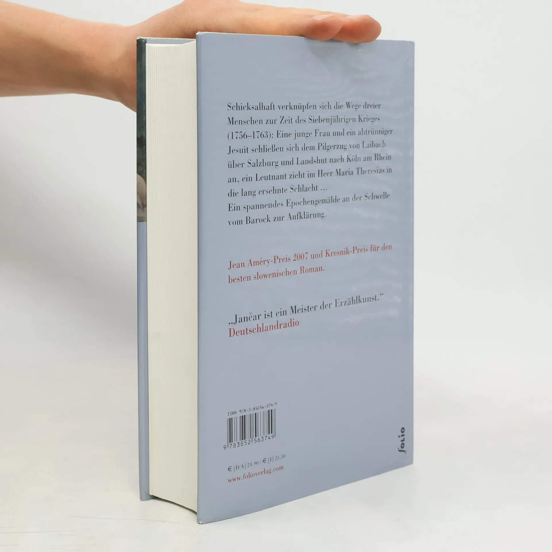Liebe, Sünde, Leidenschaft – die Geschichte einer jungen Frau zur Zeit des Siebenjährigen Krieges. Schicksalhaft verknüpfen sich die Lebenswege dreier Menschen des 18. Jahrhunderts: Katharina, Tochter des krainischen Gutsverwalters Poljanec, schließt sich den Wallfahrern an, um dumpfer Bigotterie und unerfülltem Begehren zu entfliehen; sie begegnet der großen Liebe, wird dennoch zur Offiziershure. Der Pfau, krainischer Artilleriehauptmann, der im österreichisch-preußischen Krieg um Schlesien in der Armee Maria Theresias dient, stolziert unter ihrem Fenster auf dem Gutshof umher, würdigt sie keines Blickes und erzählt von nie geschlagenen Schlachten. Der Jesuit, ein slowenischer Missionar, hat die gewaltsame Vertreibung der Jesuiten aus Paraguay erlebt. Wieder in Europa, schließt er sich den Köln-Pilgern an und prägt fortan Katharinas Lebensweg. Wechselnde Schauplätze – Salzburg, Landshut, Münster, Köln und Tutzing –, historische Ereignisse – mit der Schlacht von Leuthen als Höhepunkt – sowie eine Fülle von Nebenfiguren und lebensvollen Handlungen bilden ein spannendes Epochengemälde an der Schwelle vom Barock zur Aufklärung.