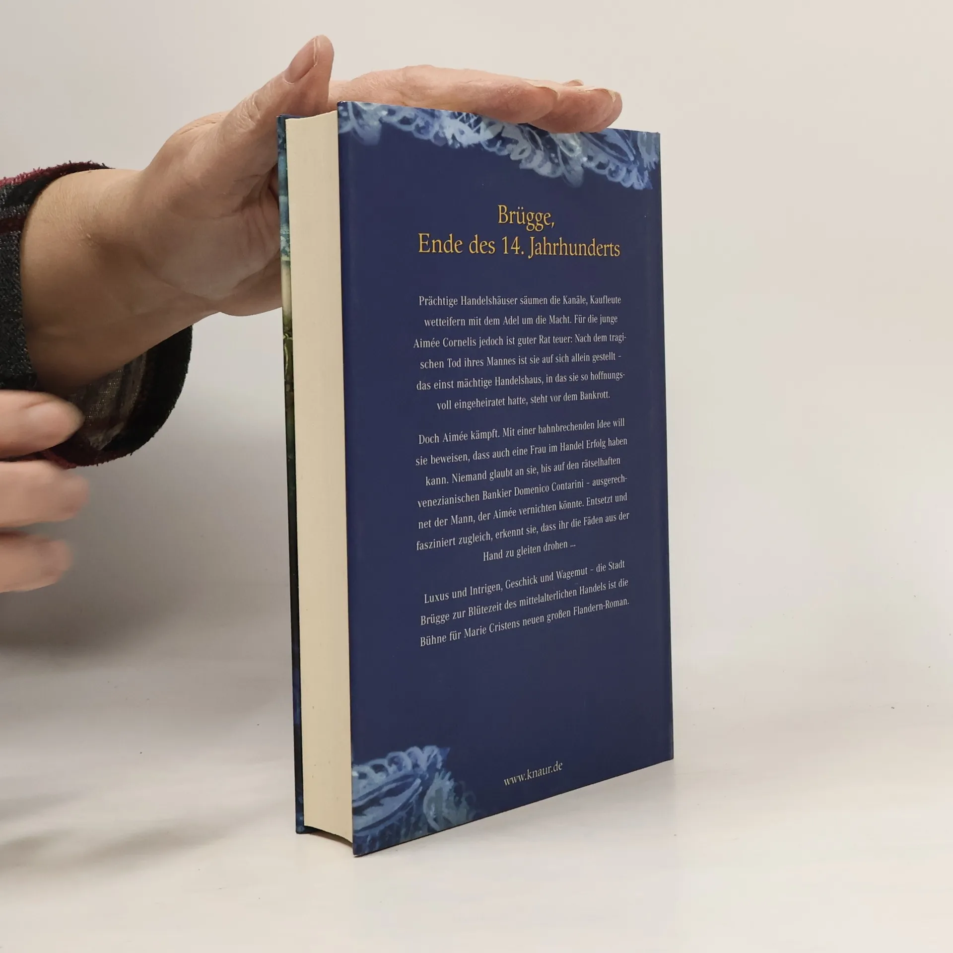 Brügge, Ende des 14. Jahrhunderts. Guter Rat ist teuer für die junge Adlige Aimée Andrieux: Kurz nachdem sie ins Handelshaus Cornelis eingeheiratet hat, kommt ihr Gatte ums Leben – und sie steht vor dem Nichts. Mächtige Kreditgeber fordern nach dem Tod des Herrn ihr Geld zurück. Doch gegen den Widerstand aller will Aimée kämpfen, will beweisen, dass auch eine Frau im Handel Erfolg haben kann: Als ehemalige Hofdame kennt sie die Schwäche der jungen Herzogin Margarete für Juwelen, kostbare Roben und prächtig gewirkte Teppiche – und weiß sie mit viel kaufmännischem Mut zu nutzen. Doch was genau führt der undurchsichtige Venezianer Domenico Contarini im Schilde, ein Abgesandter des Dogen? Entsetzt und zugleich fasziniert muss die junge Handelsherrin erkennen, dass ihr die sorgsam geknüpften Fäden aus der Hand zu gleiten drohen …