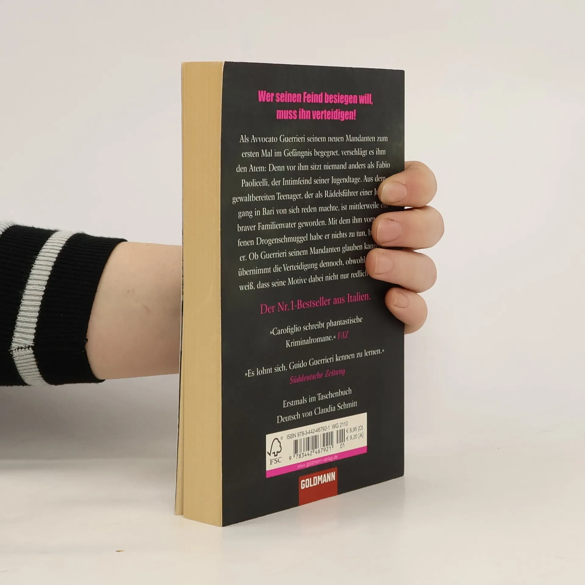 Wer seinen Feind besiegen will, muss ihn verteidigen! Als Avvocato Guerrieri seinem neuen Mandanten zum ersten Mal im Gefängnis begegnet, verschlägt es ihm den Atem: Denn vor ihm sitzt niemand anders als Fabio Paolicelli, der Intimfeind seiner Jugendtage. Aus dem gewaltbereiten Teenager, der als Rädelsführer einer Jugendgang in Bari von sich reden machte, ist mittlerweile ein braver Familienvater geworden. Mit dem vorgeworfenen Drogenschmuggel habe er nichts zu tun, beteuert er. Ob Guerrieri seinem Mandanten glauben kann, weiß er nicht. Er übernimmt die Verteidigung jedoch trotzdem, obwohl er genau weiß, dass seine Motive dabei nicht nur redlich sind … Der dritte Guido-Guerrieri-Roman aus der Feder des ehemaligen Anti-Mafia-Staatsanwalts.