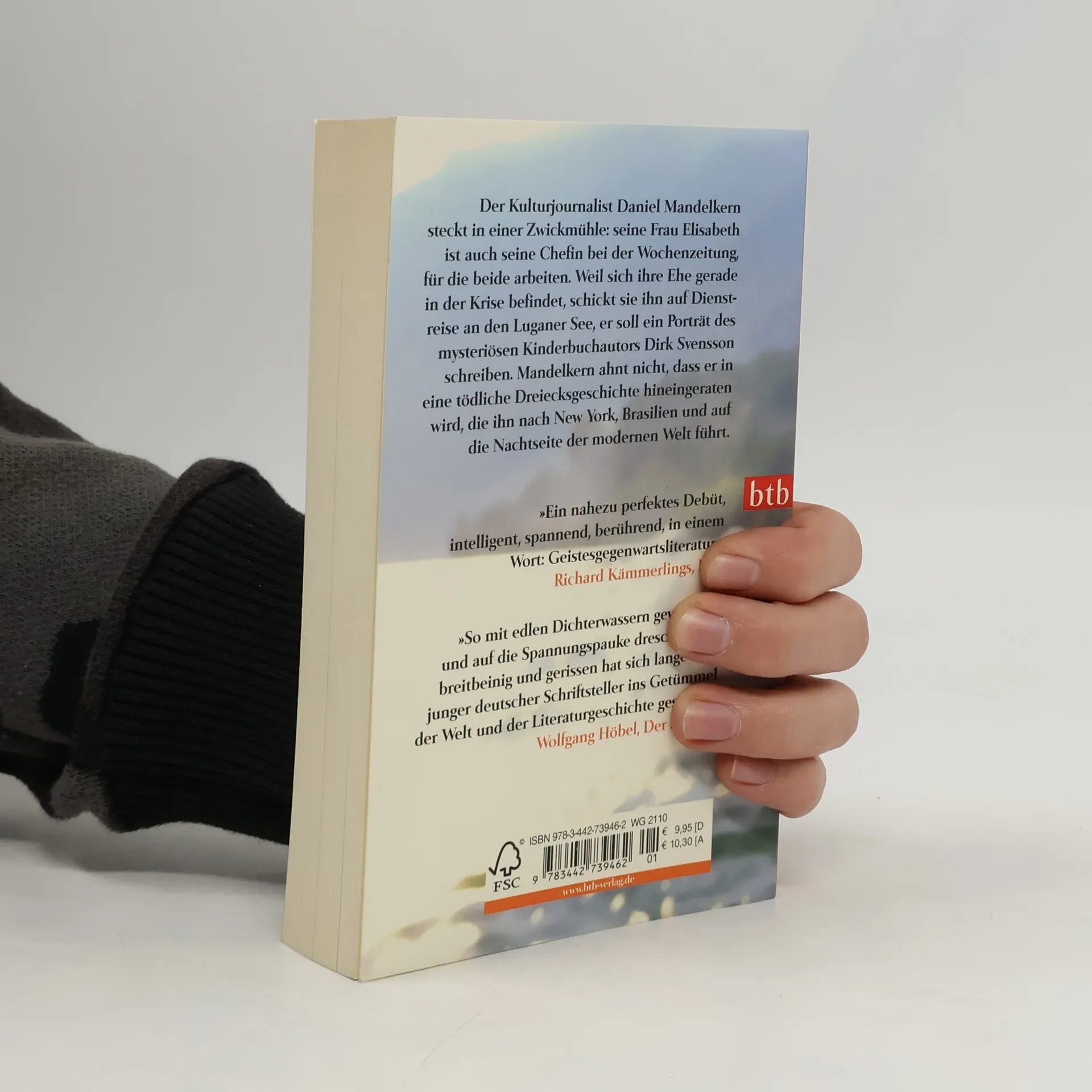 Der Kulturjournalist Daniel Mandelkern steckt in einer Zwickmühle: seine Frau Elisabeth ist auch seine Chefin bei der Wochenzeitung, für die beide arbeiten. Und weil sich ihre Ehe gerade in der Krise befindet, schickt sie ihn an den Luganer See, damit er ein Porträt des mysteriösen Kinderbuchautors Dirk Svensson verfasst. Mandelkern ahnt dabei nicht, dass er in eine rätselhafte und tödliche Dreiecksgeschichte hineingezogen werden wird, die ihn nach New York, Brasilien und auf die Nachtseite der modernen Welt führt. Eine hochspannende Reise, von Thomas Pletzinger mit großer sprachlicher Finesse, atmosphärischer Dichte und ungeheurer Rasanz in Szene gesetzt.
