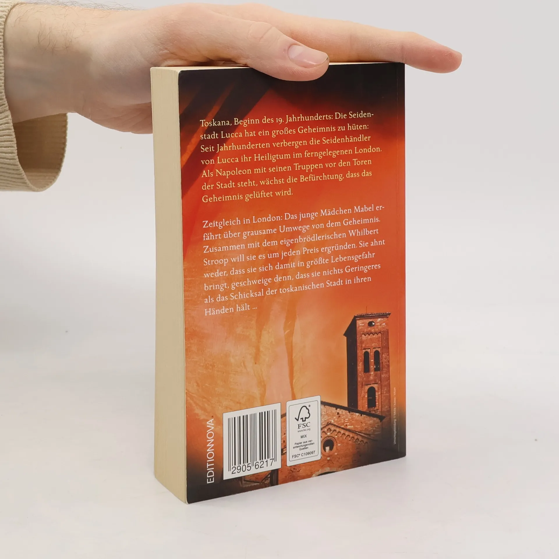 Toskana, 1805: Napoleon steht vor den Toren Luccas, und die Stadt bangt um die Entdeckung ihres Geheimnisses: Seit Jahrhunderten verbergen Luccheser Seidenhändlern im fernen London ihr Heiligtum. Doch Lucca hat einen unbekannten Feind. Noch weiß die junge Mabel Flinchurst nicht, dass das Schicksal der kleinen italienischen Stadt in ihren Händen liegt. Gemeinsam mit dem verschrobenen Whilbert Stroop macht sie sich auf, das Geheimnis von Lucca - und das ihres eigenen Lebens - zu lüften.