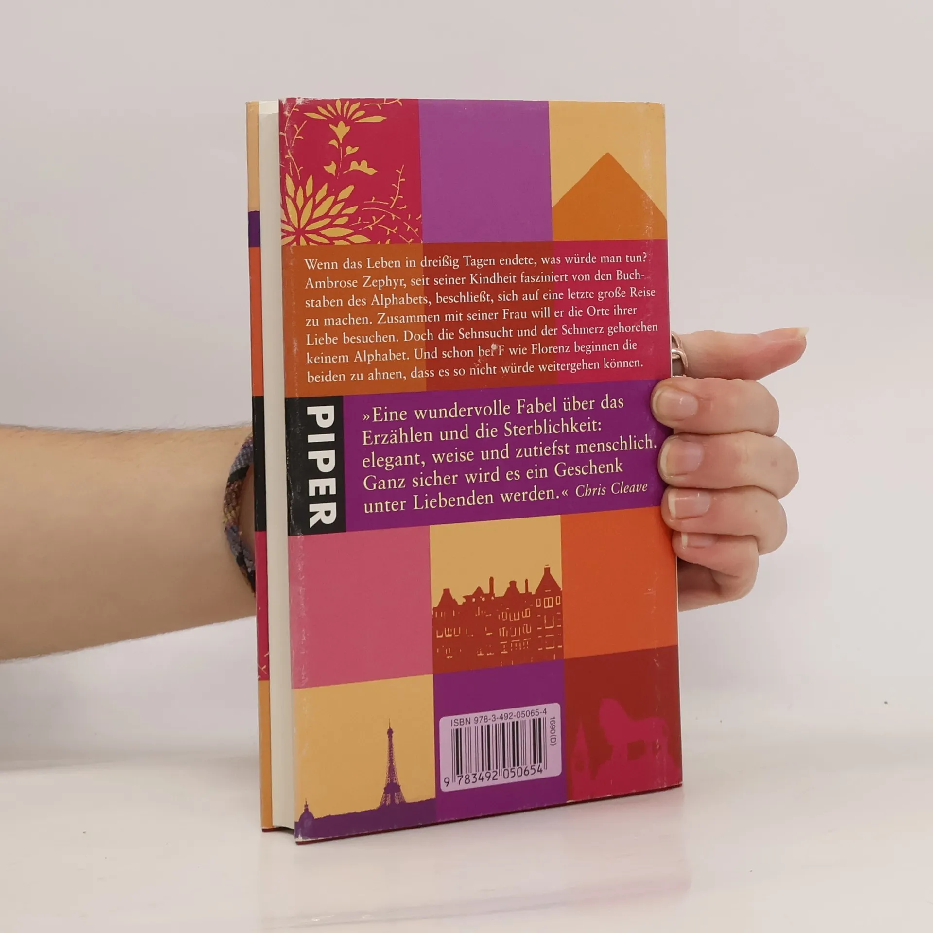 Ambrose Zephyr bewohnte mit seiner Frau ein schmales, mit Büchern vollgestopftes viktorianisches Reihenhaus. Er besaß zwei maßgeschneiderte Anzüge und versäumte es nie, seiner Frau Zipper die Tür aufzuhalten. Zipper ruhte in sich wie kaum eine andere, nahm Dummköpfe mit Anmut hin und trug nur zum Lesen eine Brille, die sie in einem kleinen Geschäft in Paris gekauft hatte. Für sie war Ambrose schlicht der einzige Mann, den sie jemals wirklich geliebt hatte. Nun sollte er sterben, und der Arzt hatte ihnen geraten, für die verbleibenden 26 Tage Vorkehrungen zu treffen. Aber Ambrose hatte den rindsledernen Koffer unter dem Bett hervorgezogen und beschlossen, sich mit Zipper auf eine unvergessliche Reise zu machen. Bei A wie Amsterdam fingen sie an, besuchten Berlin, Chartres und die Pyramiden von Gizeh. Doch schon bald mussten sie erkennen, dass es so nicht würde weitergehen können.