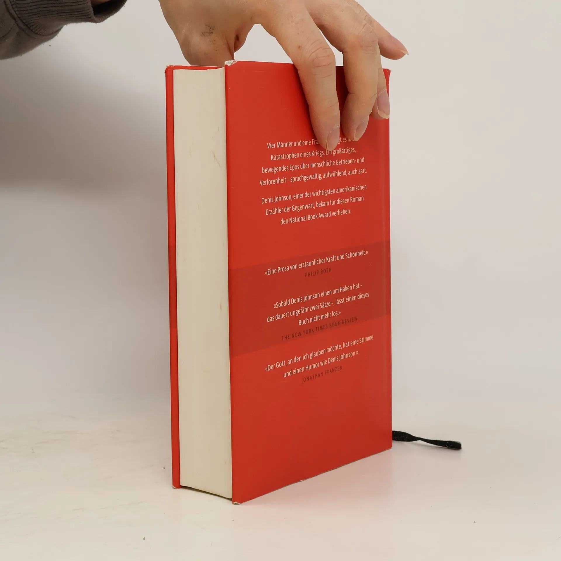 Vier Männer und eine Frau verschlägt es in die Katastrophen eines Kriegs. Ein großartiges, bewegendes Epos über menschliche Getrieben- und Verlorenheit – sprachgewaltig, aufwühlend, auch zart. Denis Johnson, einer der wichtigsten amerikanischen Erzähler der Gegenwart, bekam für diesen Roman den National Book Award verliehen. «Eine Prosa von erstaunlicher Kraft und Schönheit.» PHILIP ROTH «Sobald Denis Johnson einen am Haken hat – das dauert ungefähr zwei Sätze –, lässt einen dieses Buch nicht mehr los.» THE NEW YORK TIMES BOOK REVIEW «Der Gott, an den ich glauben möchte, hat eine Stimme und einen Humor wie Denis Johnson.» JONATHAN FRANZEN