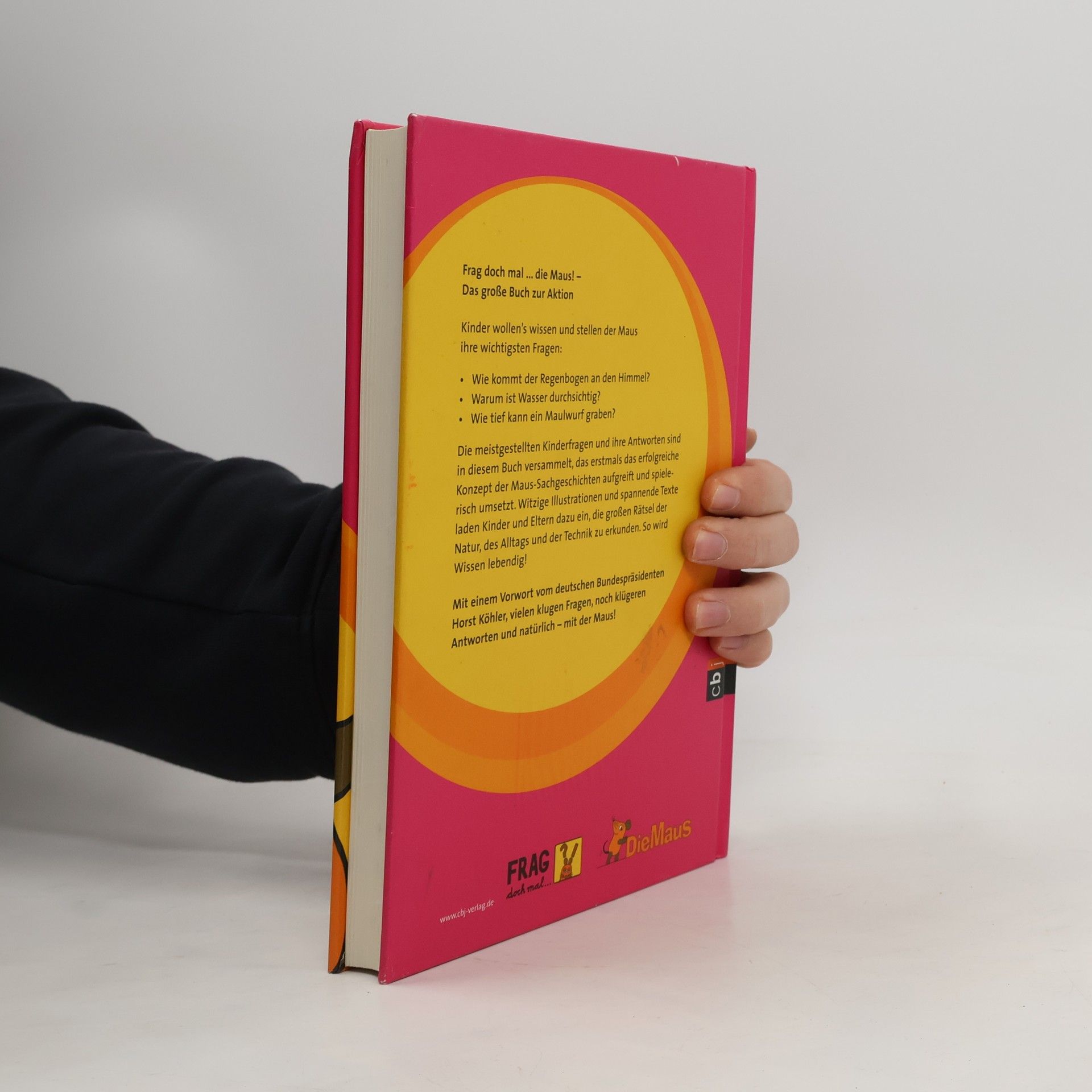 Die großen Antwortbücher zur Frageaktion der „Sendung mit der Maus“. Was interessiert Kinder wirklich? Das wollte die Maus in einer groß angelegten Frageaktion erfahren. Mehr als 75.000 Fragen sind in der Redaktion eingegangen. Beantwortet wurden sie aber nicht nur in der „Sendung mit der Maus“, sondern auch in den großen „Frag doch mal. die Maus!“-Sachbüchern. Warum ist der Himmel blau? Das war die mit Abstand am häufigsten gestellte Frage in der „Frag doch mal …“-Aktion der „Sendung mit der Maus“. Das Buch gibt Antworten auf diese und ca. fünfzig weitere Fragen, die Kinder am meisten beschäftigen. Hier wird erklärt, warum die Banane krumm ist, wie das Bild in den Fernsehen kommt oder der Strom in die Steckdose. Hätten Sie’s gewusst? Mit einem Vorwort des Bundespräsidenten Horst Köhler. • Mausschlaue Antworten auf die wichtigsten Kinderfragen • Mit liebevollen Illustrationen von Antje von Stemm • Das ideale Geschenkbuch für neugierige Kinder