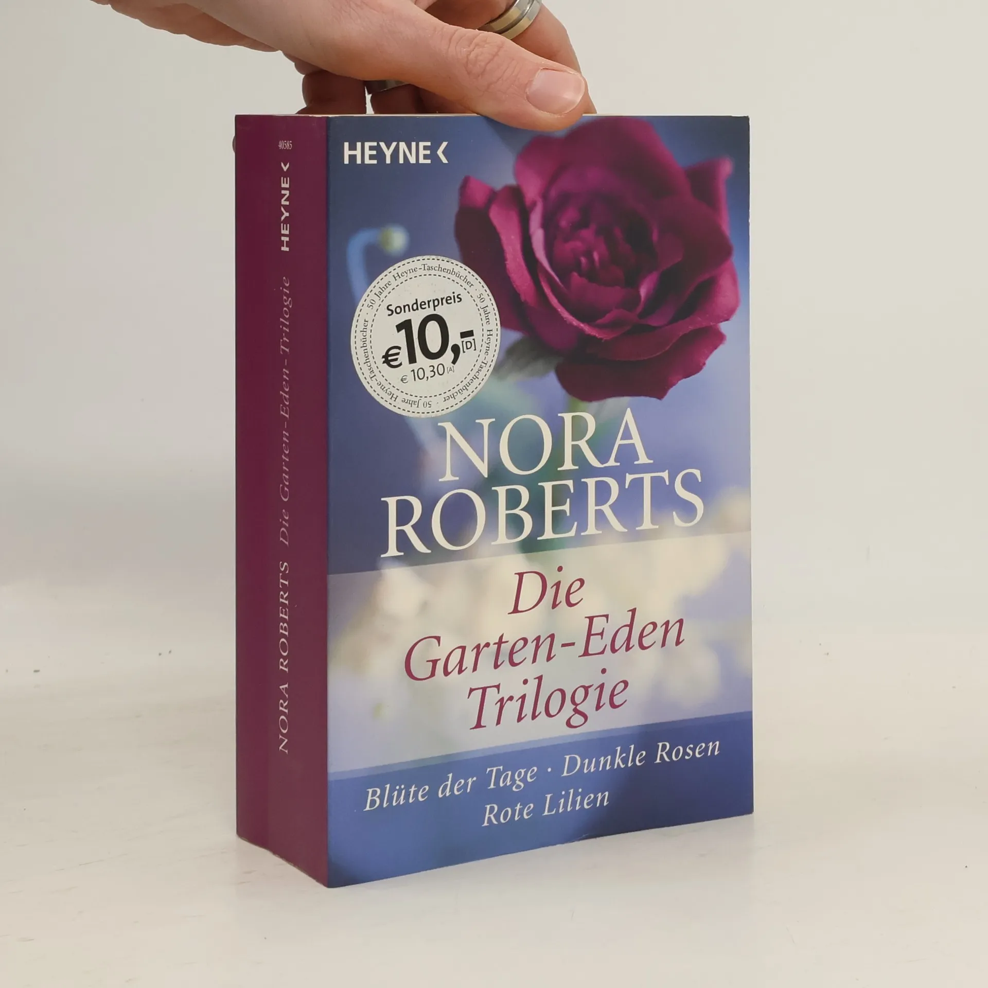 Eine unheimliche Macht bedroht ihre Liebe Die „Garten- Eden-Trilogie“ von Nora Roberts erzählt die Geschichte dreier Frauen, deren Leben eng miteinander verbunden sind und die sich gegenseitig die Kraft schenken, ihr Herz für die Liebe zu öffnen. Drei dramatische und leidenschaftliche Frauenromane von Nora Roberts in einem Band „Besser kann man Romantik und Drama nicht verbinden.“ Publishers Weekly „Nora Roberts erfüllt die geheimsten Wünsche ihrer Leserinnen.“ The New York Times