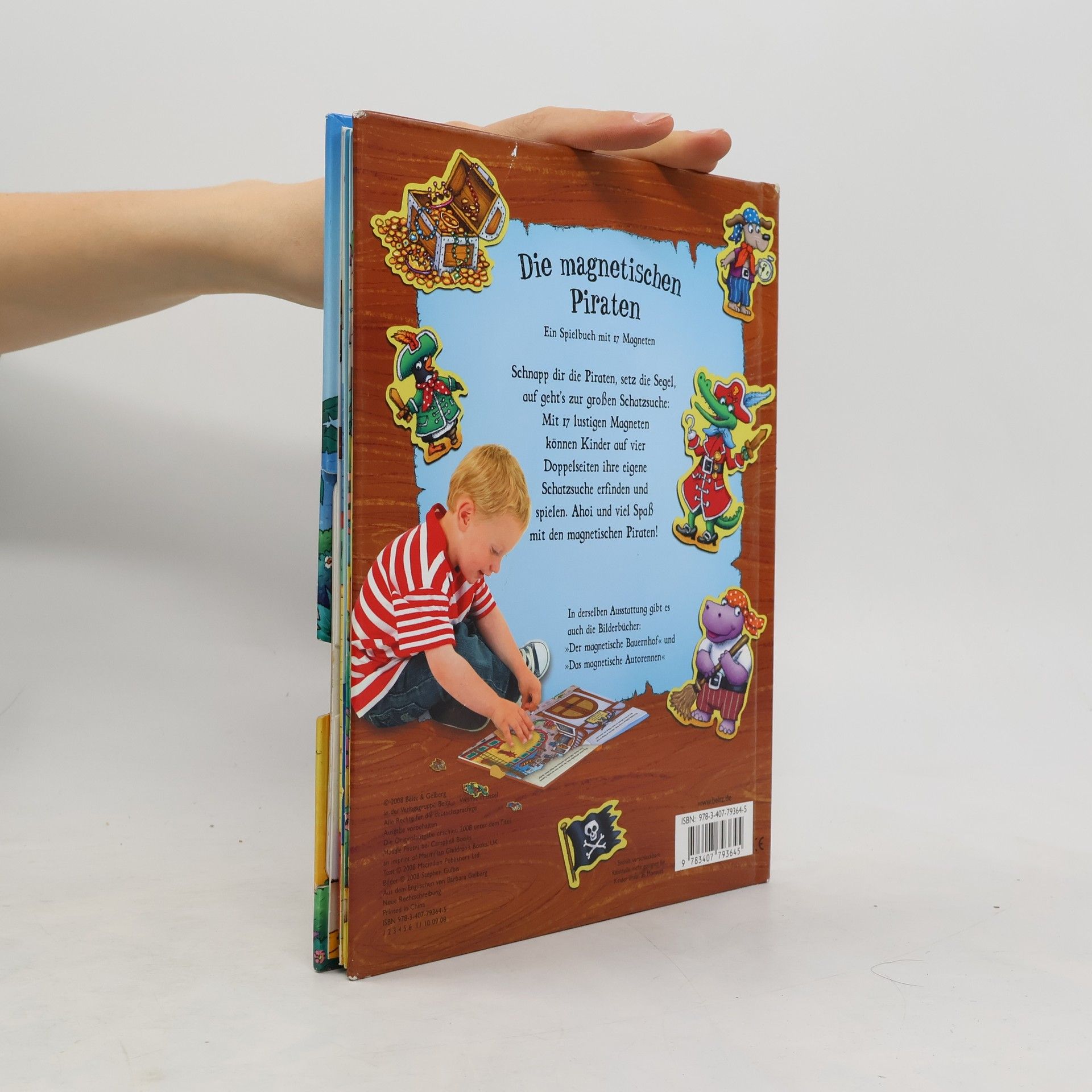 Piraten sind einfach anziehend – und diese hier sind erst recht. Nach dem Magnetischen Bauernhof (60.000 verkaufte Exemplare) und dem Magnetischen Autorennen geht es jetzt auf hohe See! Die Magnetischen Piraten laden Kinder ab drei Jahren ein zur spannenden Schatzsuche. Ob sie die geheimnisvol-len Goldjuwelen finden werden? Mit 17 lustigen Magneten kann jedes Kind auf vier großen Doppelseiten sein ganz eigenes Piratenabenteuer erfinden und auf dem Piratenschiff das Kommando übernehmen.
