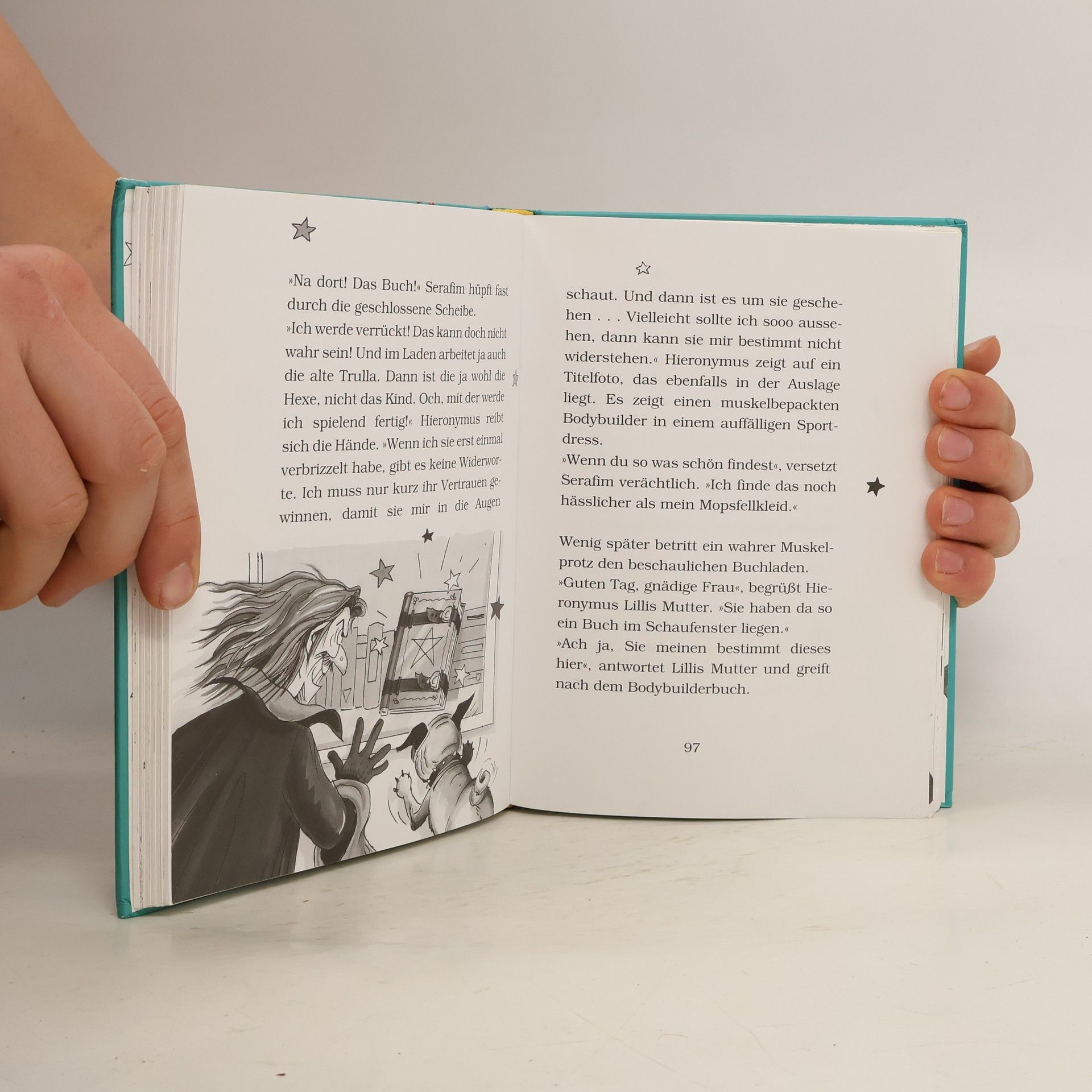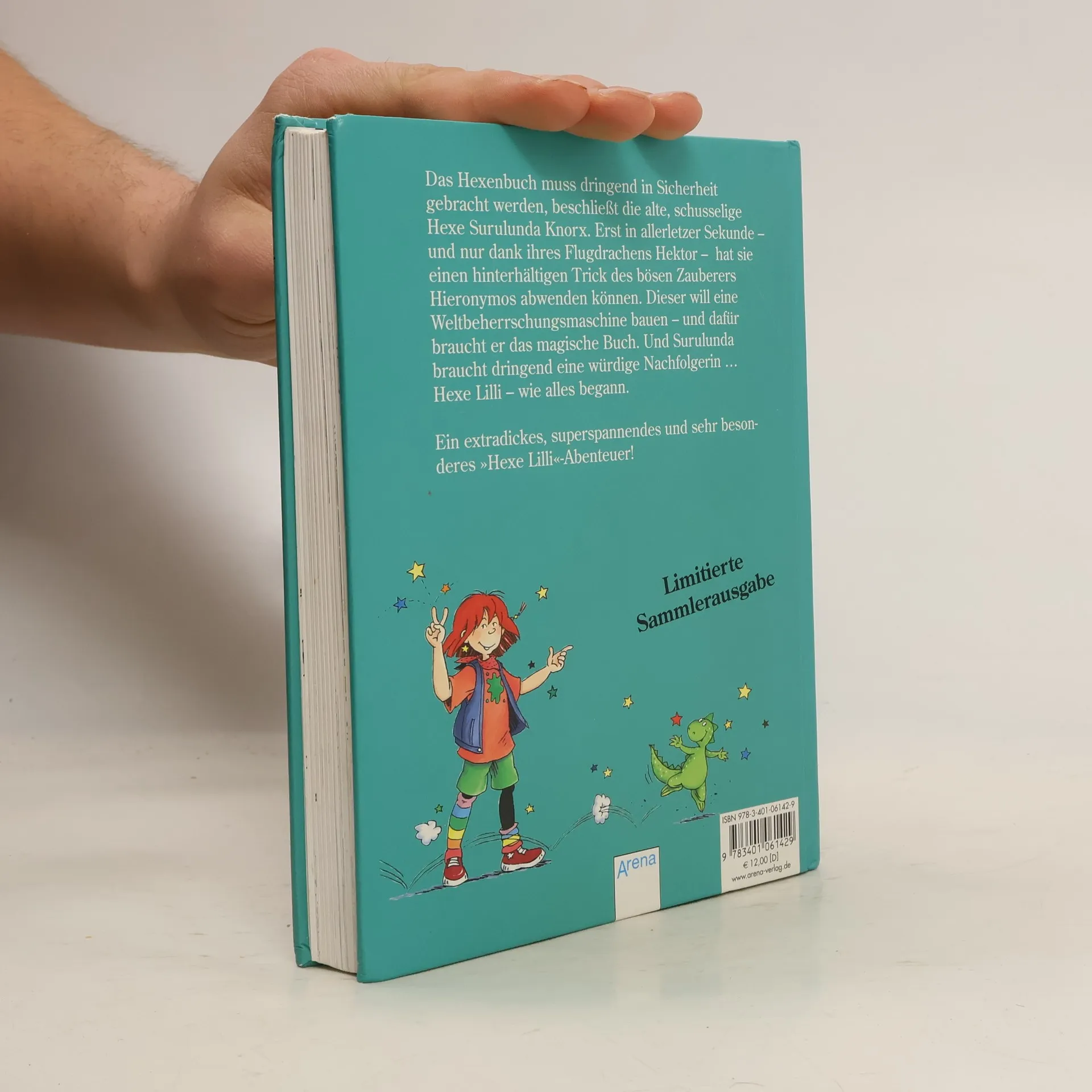 Das Hexenbuch muss dringend in Sicherheit, beschließt die alte, schusselige Hexe Surulunda Knorx als sie wieder erst in allerletzter Sekunde - und nur dank ihres Flugdrachens - einen Trick des bösen Zauberers Hieronymos abwenden kann. Dieser will eine Weltbeherrschungsmaschine bauen - dafür braucht er das Buch. Und Surulunda eine würdige Nachfolgerin.