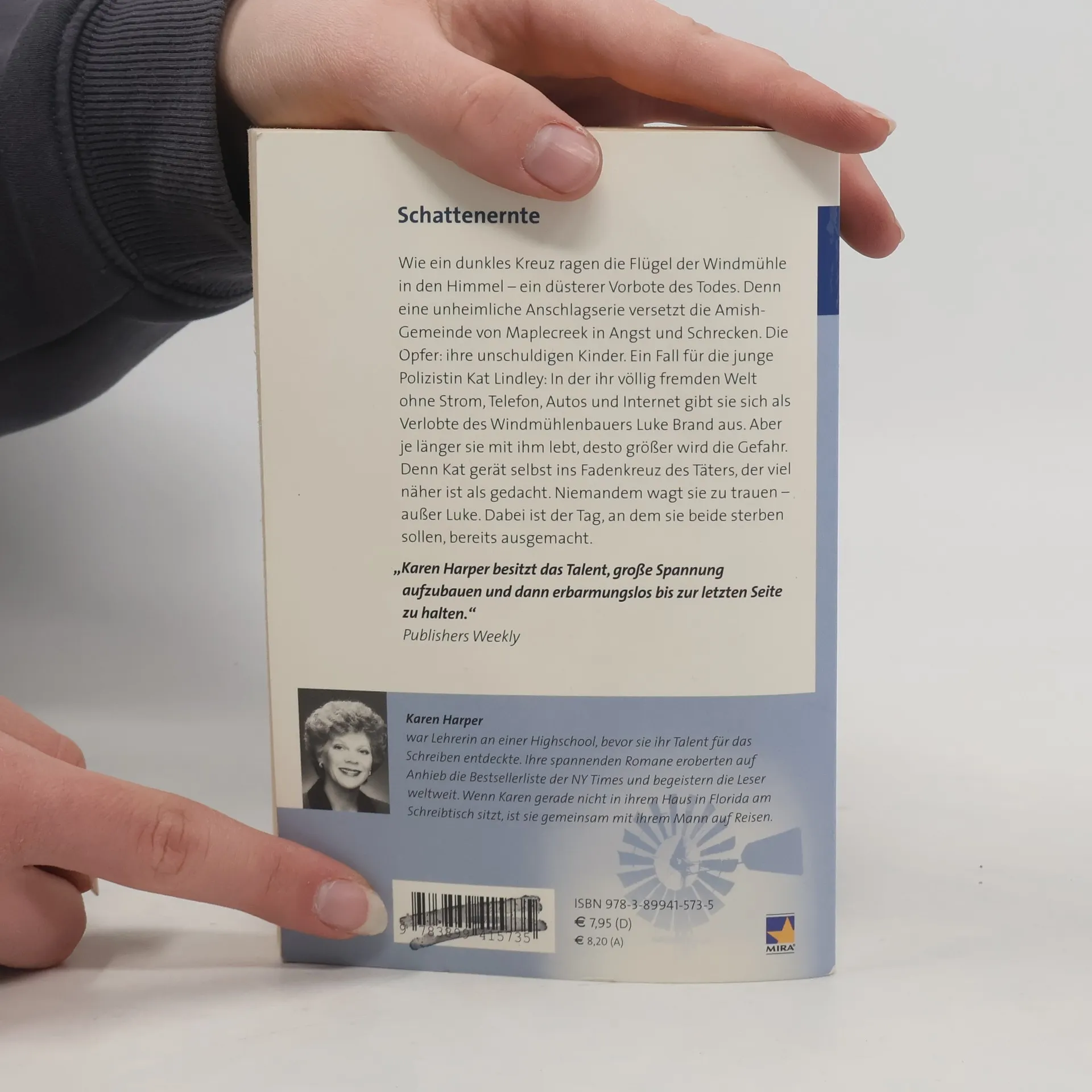 Wie ein dunkles Kreuz ragen die Flügel der Windmühle in den Himmel ein düsterer Vorbote des Todes. Denn eine unheimliche Anschlagserie versetzt die Amish-Gemeinde von Maplecreek in Angst und Schrecken. Die Opfer: ihr unschuldigen Kinder. Ein Fall für die junge Polizistin Kat Lindley: In der ihr völlig fremden Welt ohne Strom, Telefon, Autos und Internet gibt sie sich als Verlobte des Windmühlenbauers Luke Brand aus. Aber je länger sie mit ihm lebt, desto größer wird die Gefahr. Denn Kat gerät selbst ins Fadenkreuz des Täters, der viel näher ist als gedacht. Niemandem wagt sie zu trauen außer Luke. Dabei ist der Tag, an dem sie beide sterben sollen, bereits ausgemacht.