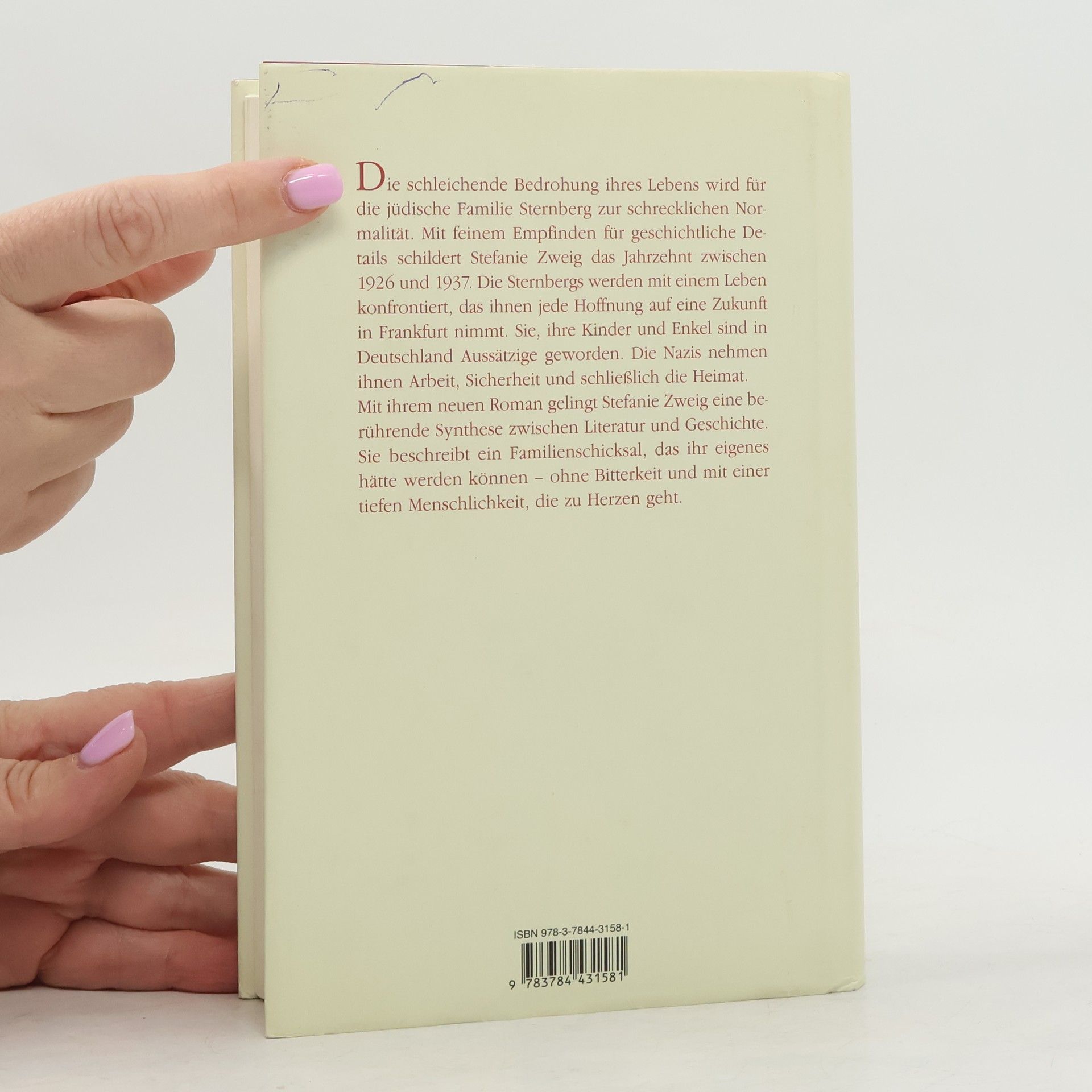 Dieses Buch lässt niemanden unberührt: Die Bestsellerautorin erzählt die Schicksalsjahre der Frankfurter Familie Sternberg. Die schleichende Bedrohung ihres Lebens wird für die jüdische Familie Sternberg zur schrecklichen Normalität. Mit feinem Empfinden für geschichtliche Details schildert Stefanie Zweig das Jahrzehnt zwischen 1926 und 1937. Die Sternbergs werden mit einem Leben konfrontiert, das ihnen jede Hoffnung auf eine Zukunft in Deutschland nimmt. Sie, ihre Kinder und Enkel sind in Deutschland Aussätzige geworden. Die Nazis nehmen ihnen Arbeit, Sicherheit und schließlich die Heimat. Mit ihrem neuen Roman gelingt Stefanie Zweig ein literarisches Meisterwerk - ohne Bitterkeit und oft mit einem Humor, der den Schmerz lindert.978378443158-1