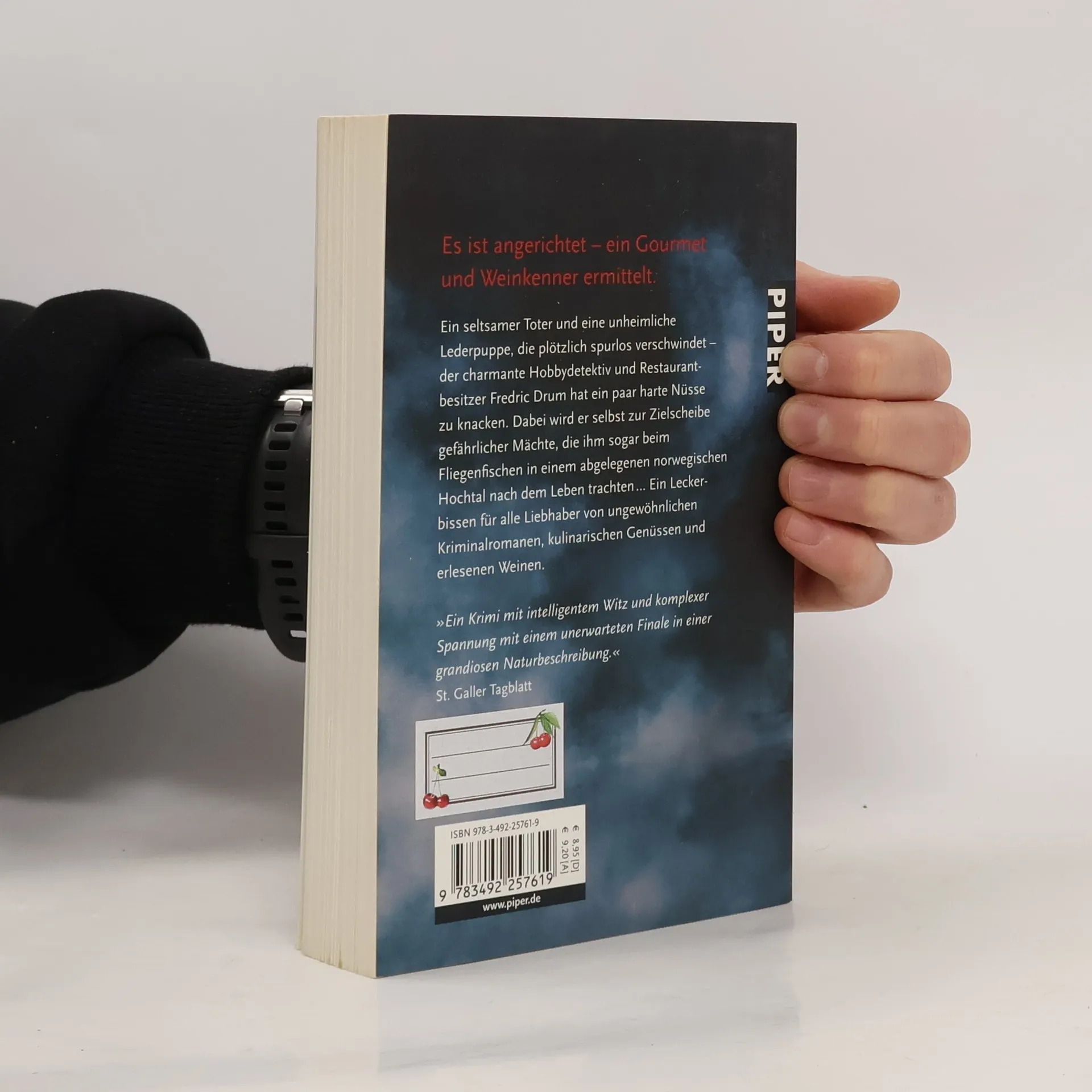 Ein seltsamer Toter und eine unheimliche Lederpuppe, die plötzlich spurlos verschwindet – der charmante Hobbydetektiv und Restaurantbesitzer Fredric Drum hat ein paar harte Nüsse zu knacken. Dabei wird er selbst zur Zielscheibe gefährlicher Mächte, die ihm sogar beim Fliegenfischen in einem abgelegenen norwegischen Hochtal nach dem Leben trachten … Ein Leckerbissen für alle Liebhaber von ungewöhnlichen Kriminalromanen, kulinarischen Genüssen und erlesenen Weinen.