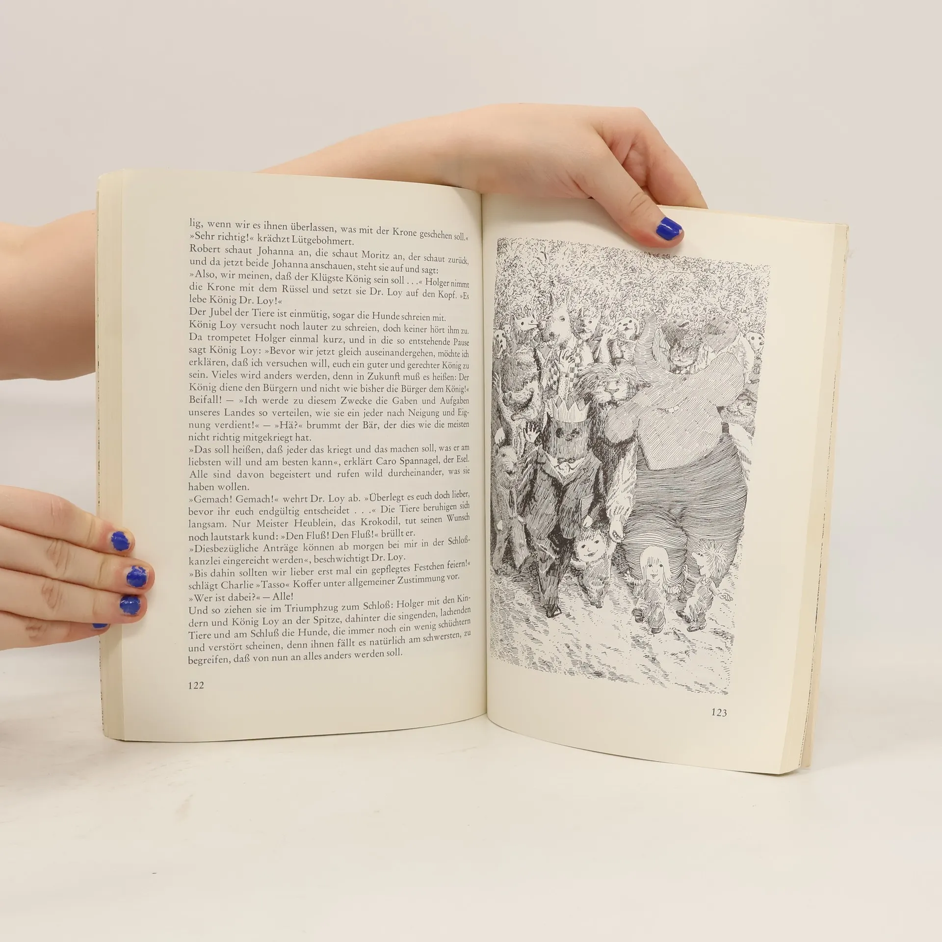 König werden ist nicht schwer, König sein dagegen sehr. Das stellen nach vielen Abenteuern und Bewährungsproben fest: die Kinder Moritz, Johanna und Robert, das Schwein König Schwarte, die Maus Charlie »Tasso« Koffer, der Esel Caro Spannagel, die Katze Fräulein Bellmaus und die Eule Dr. Johannes Loy. F. K. Waechter und Bernd Eilert laden ein in eine fröhlich-verkehrte Welt, in der es doch mit rechten Dingen zugeht. Dieses übermütige Buch für Kinder, Eltern und andere anspruchsvolle Leser, das erstmals 1972 erschienen ist, setzt allem die Krone auf. Man kann es nämlich nicht nur lesen, man kann sogar mitmachen: falzen, raten, reimen, puzzlen, malen, singen, ja auch mit der Schere darf man es traktieren."