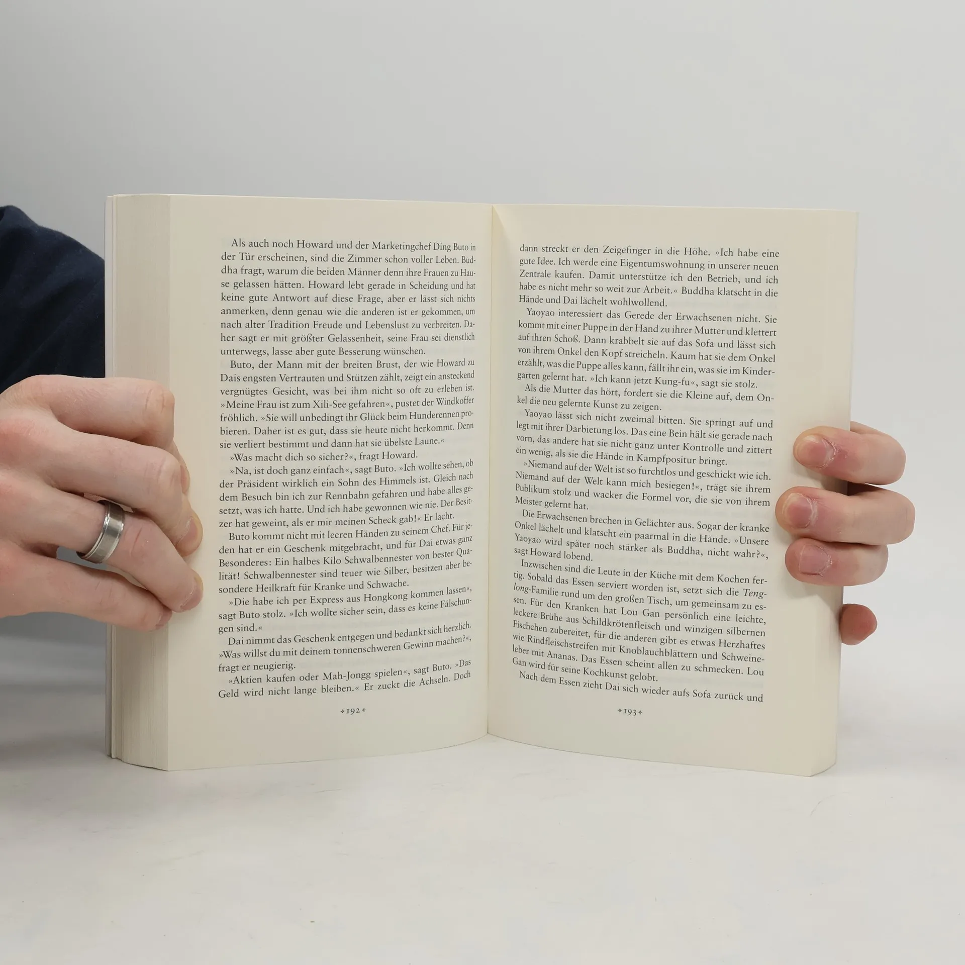 „Aufsteigender Drache“ heißt die Firma des jungen Unternehmers Dai Xinkong, und bei der Neujahrsfeier kann er seinen Angestellten von neuen Erfolgen berichten: Der Umsatz mit dem „Gehirnmarschall“, einem Kräuterelixier, das angeblich die Lern- und Denkfähigkeit steigert, entwickelt sich glänzend. Alle chinesischen Eltern wollen für ihre umhätschelten Kinder das Beste! Jetzt gilt es, eine repräsentative Firmenzentrale zu schaffen. In der rasend wachsenden Sonderwirtschaftszone Shenzhen soll ein Wolkenkratzer gebaut werden. Aber so wie Dais Firma auf zwei verschiedenen Produkten beruht (neben dem Kräuterelixier vertreibt die Firma auch Laptops), ist auch der Baugrund nicht einheitlich: Neben weichem Sand findet sich steinharter Fels. Und das ist nicht das einzige Problem: Dais Bruder wird von Produktpiraten getötet, und er selbst gerät in die Mühlen der Politik. Immer wichtiger werden die Frauen, die ihn unterstützen: Jian Roula, die seine beste Verkäuferin ist („Wenn sie den Mund aufmacht, regnet es Rosenblütenblätter vom Himmel“) und sich ihm gleich bei ihrer ersten Begegnung bereitwillig hingibt, und die scheue Tang Anqui, die Werbetexte für Dai Xinkong schreibt. Ein handlungsreicher Roman aus dem neuen China, der die Widersprüche des erwachenden Riesenreiches ebenso spannend wie menschlich erklärt.