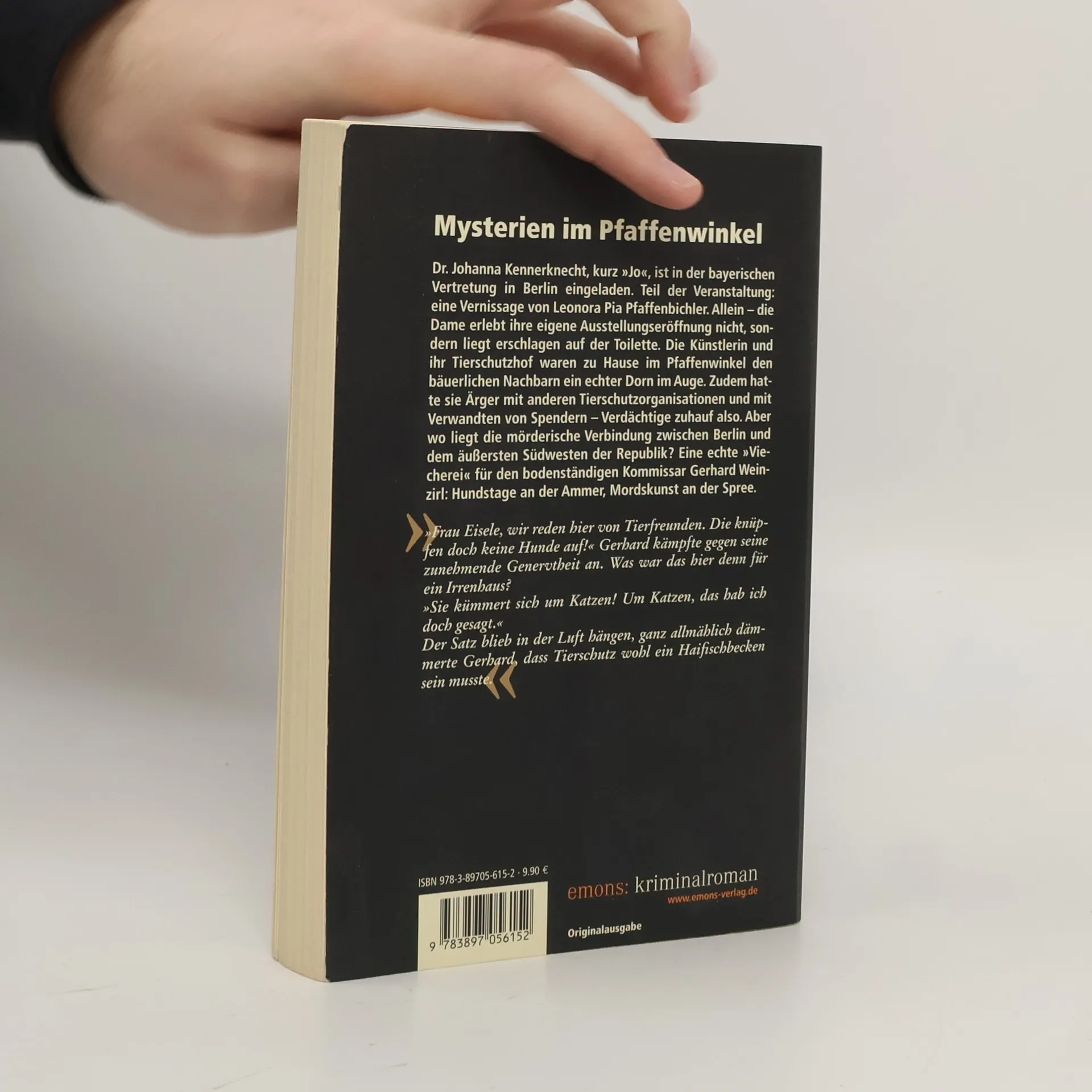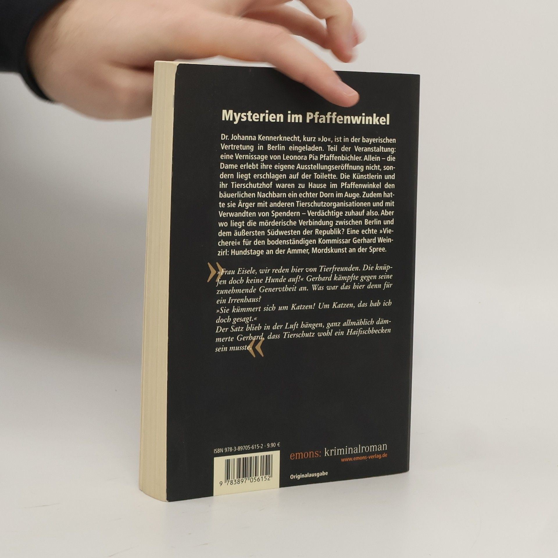 Dr. Johanna Kennerknecht, kurz 'Jo', ist mit einer Delegation von Tourismusvertretern in der bayerischen Vertretung in Berlin eingeladen. Teil der Veranstaltung: eine Vernissage von Leonora Pia Pfaffenbichler. Allein – die Dame erlebt ihre eigene Ausstellungseröffnung nicht, sondern liegt erschlagen auf der Toilette. Die Künstlerin und ihr Tierschutzhof waren zu Hause im Pfaffenwinkel den bäuerlichen Nachbarn ein echter Dorn im Auge. Zudem hatte sie Ärger mit anderen Tierschutzorganisationen und mit Verwandten von Spendern – Verdächtige zuhauf also. Aber wo liegt die mörderische Verbindung zwischen Berlin und dem äußersten Südwesten der Republik? Eine echte 'Viecherei' für den bodenständigen Kommissar Gerhard Weinzirl: Hundstage an der Ammer, Mordskunst an der Spree.